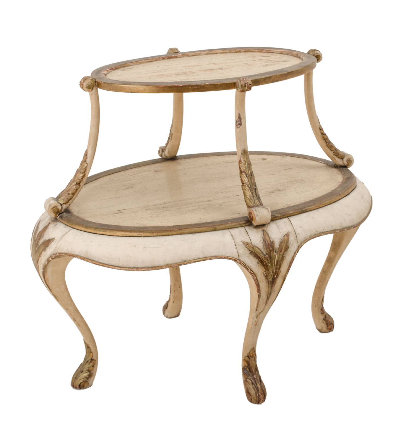 TAVOLINO a due ripiani in legno laccato e dorato. Italia XX secolo Misure: cm...