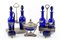 LOTTO composto da due MENAGE in argento e vetro decorato, FORMAGGIERA in argento e da due SALIERE in argento con vaschette in vetro nei toni del blu cobalto. Francia XIX secolo Misure: varie