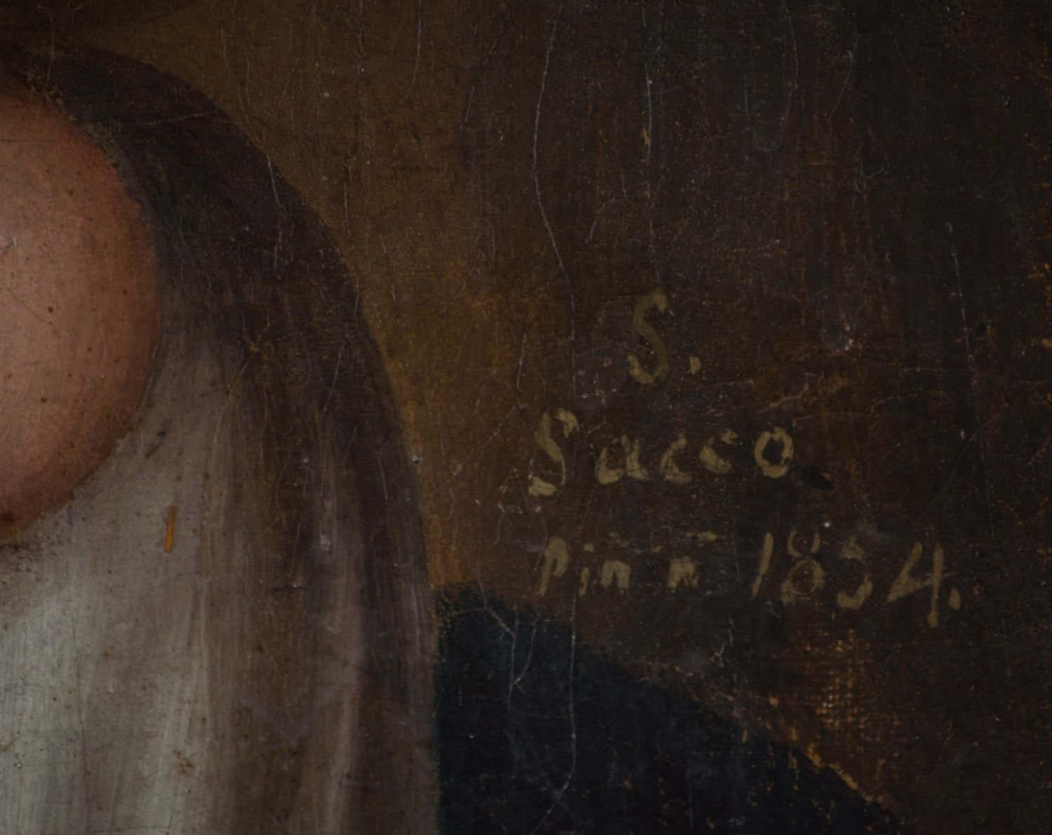 SALVATORE SACCO OLIO su tela "Madonna con Bambino e Cherubini" firmato in basso a destra entro cornice a canna ciaccata in legno dorato. Datato 1854 Misure: cm 47 x 67,5
