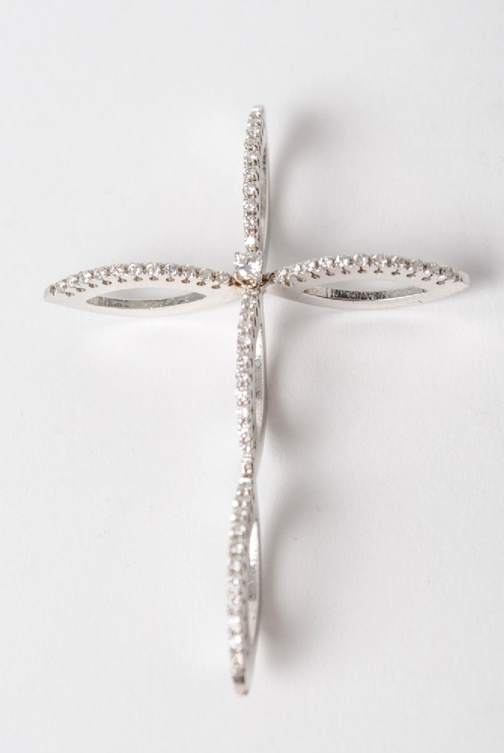 PENDENTE/CROCE in oro bianco 18 Kt. con brillantini (Kt. 1.20).