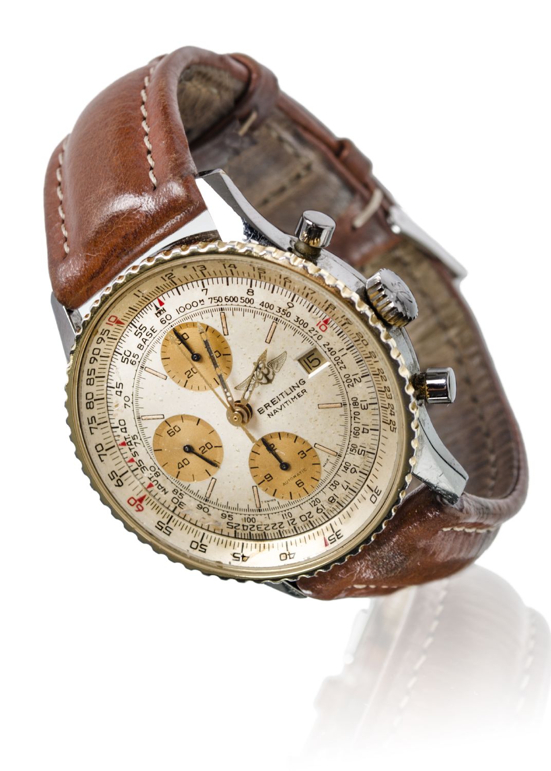 OROLOGIO/CRONOGRAFO Breitling con datario in acciaio ed oro, cinturino in pelle. Anni '90