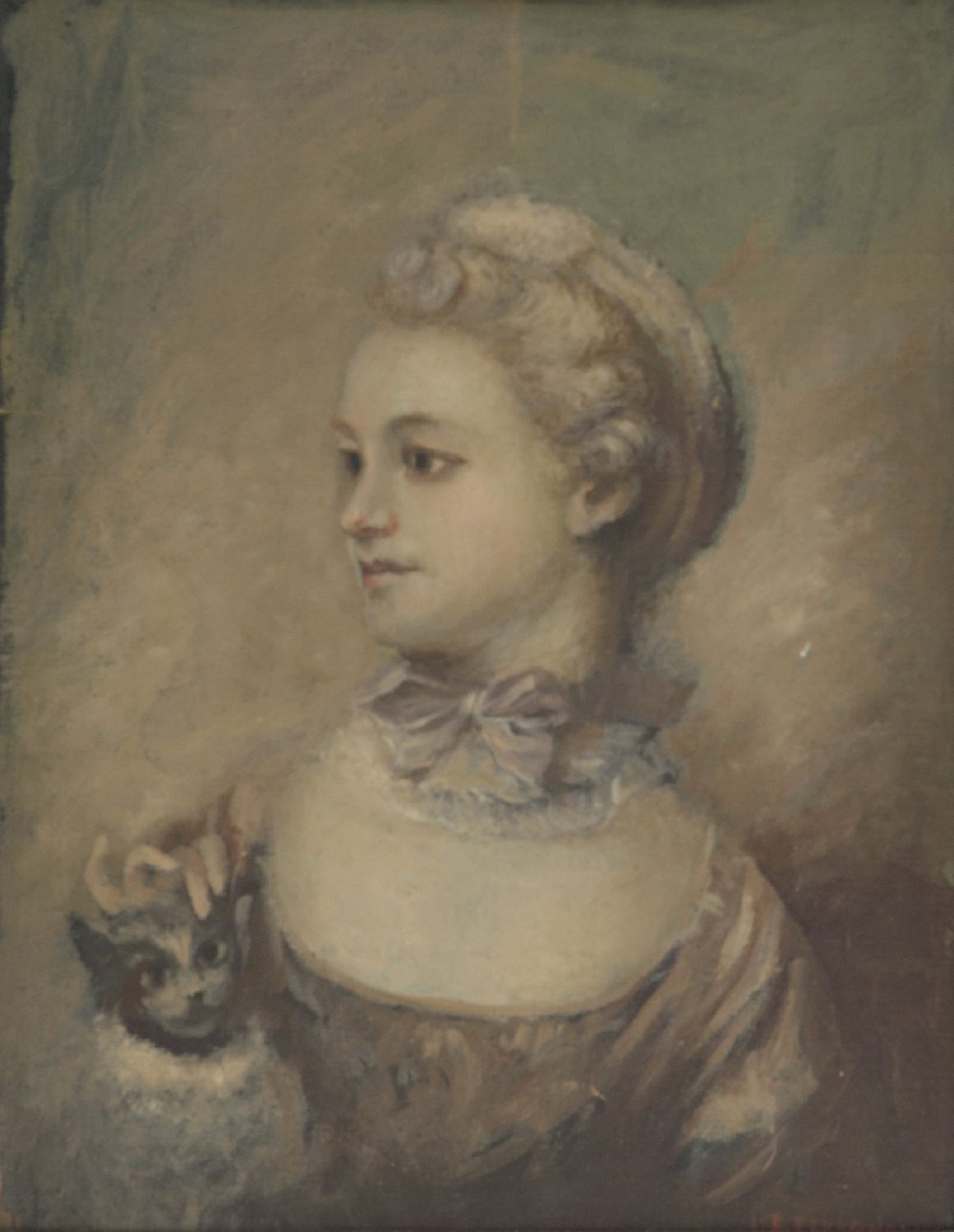 JEAN BAPTISTE PERRONEAU (1715 - 1783) OLIO su tavoletta "nobildonna con gatto". Misure: cm 26 x 35