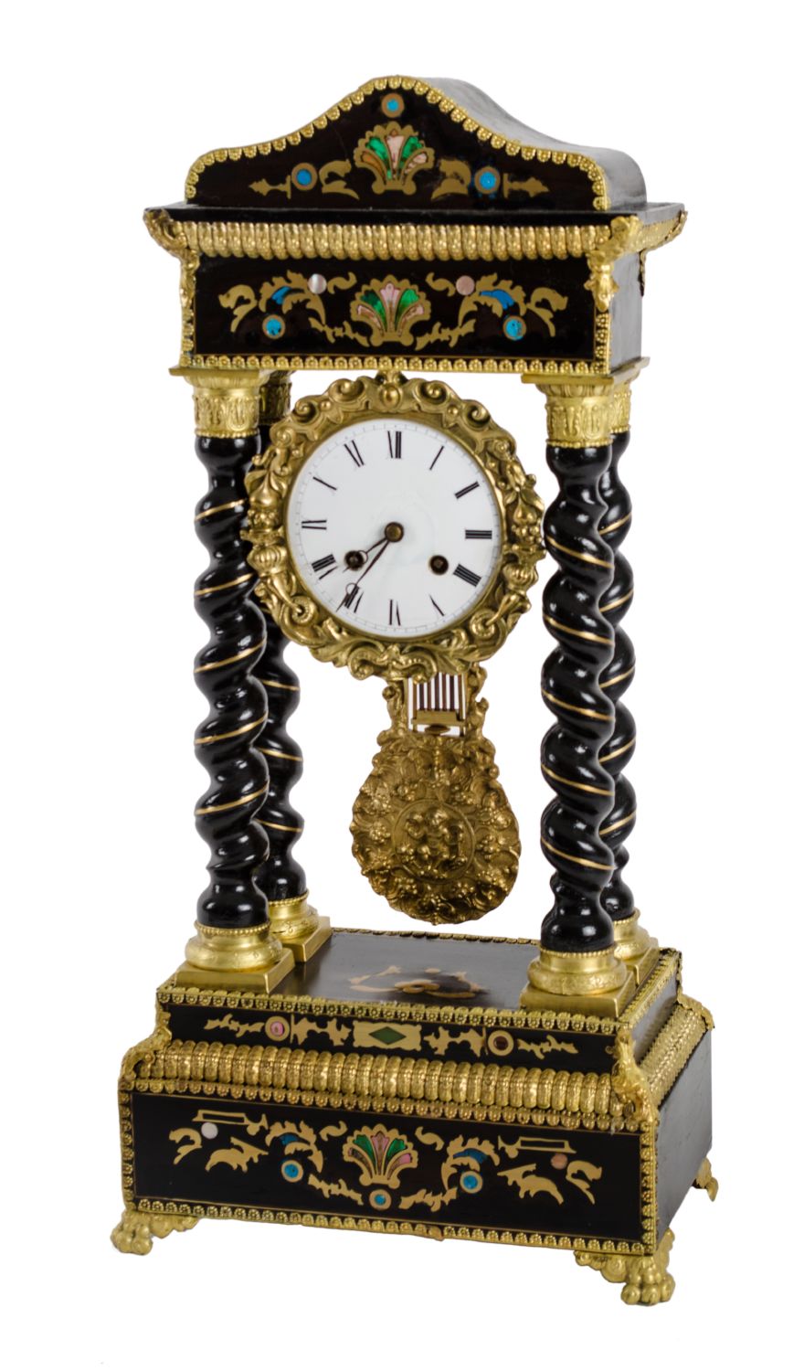 OROLOGIO Carlo X in palissandro con tarsie in bosso, capitelli e basi in...