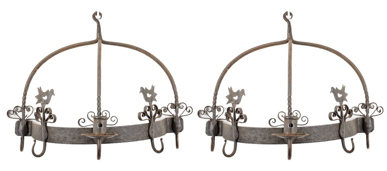 TRE APPLIQUES in ferro. Francia XX secolo Misure: cm 47,5 x 30 x h36