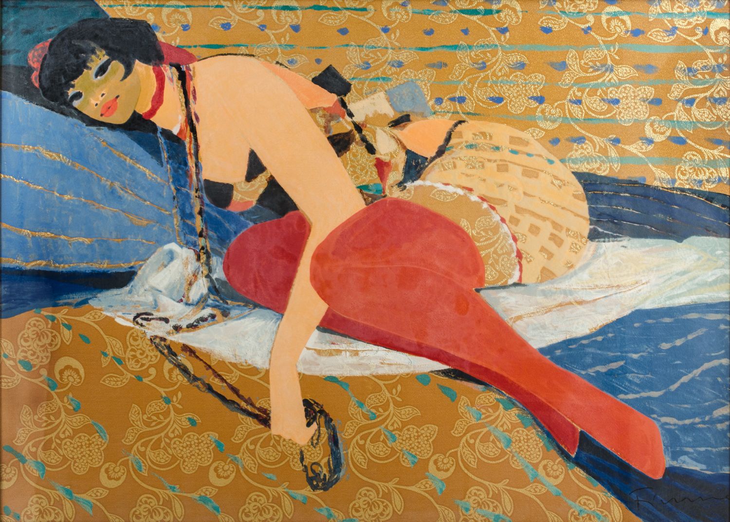 SALVATORE FIUME (Comiso (Rg) 1915 - Milano 1997) SERIGRAFIA a 40 colori su broccato "riposo della ballerina", esemplare 2/99, edizioni Bora. Misure: cm 140 x 100