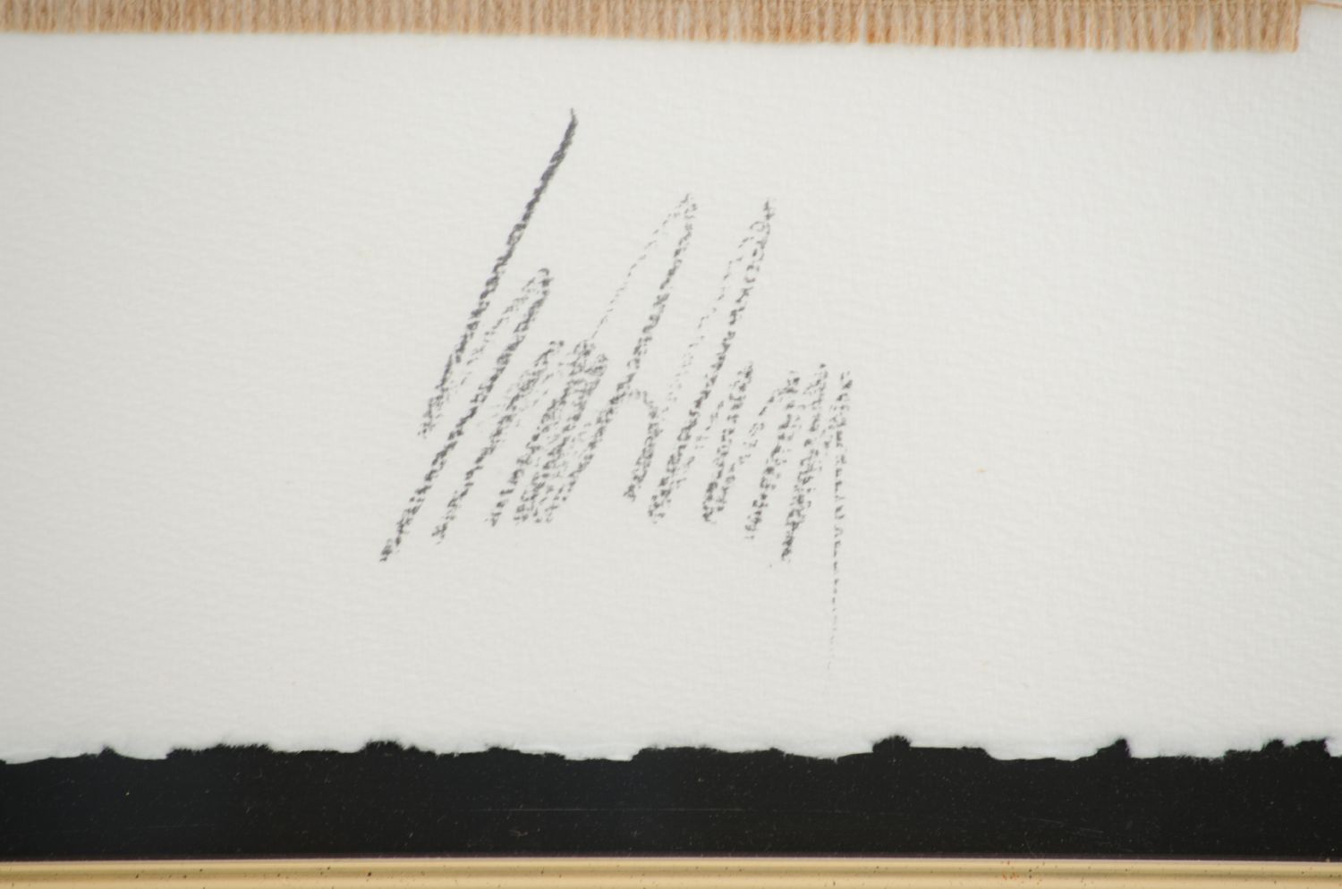 SERIGRAFIA su tela grezza applicata su cartoncino "figura astratta", esemplare II/XXX, firmata in basso a destra. Misure: cm 105 x 75
