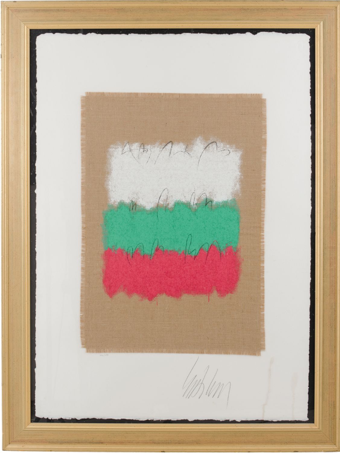 SERIGRAFIA a tre colori su tela grezza "giochi di colore", esemplare 114/199,...