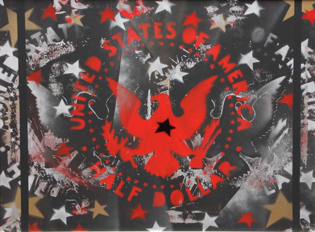Franco ANGELI Roma, 1935 - Roma, 1988 Half dollar, 1982 acrilico su tela cm 60x80 Autentica a cura di F. Gallo su fotografia