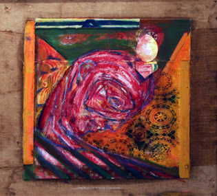Bruno CECCOBELLI Montecastello Vibio, 1952 La spirale dell’uovo tecnica mista su tela riportata su legno cm 40x43 Autentica dell’artista su fotografia