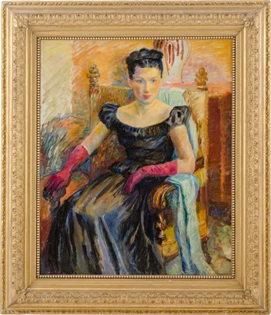 OLIO su tela "figura femminile", firmato in basso a destra Riccardo Galli. Misure: cm 80,5 x 100