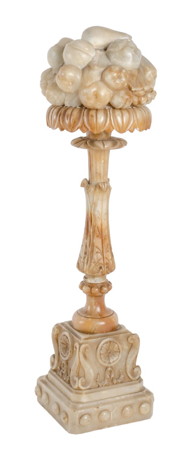 LUME da tavolo in alabastro riccamente lavorato (lievi mancanze). Italia...