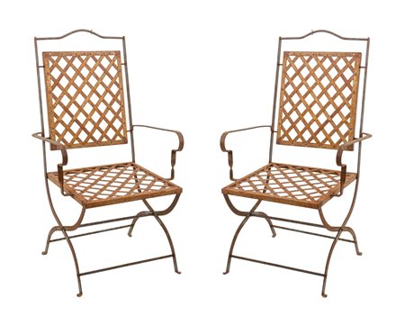 COPPIA POLTRONE in ferro. Francia XX secolo Misure: h cm 115