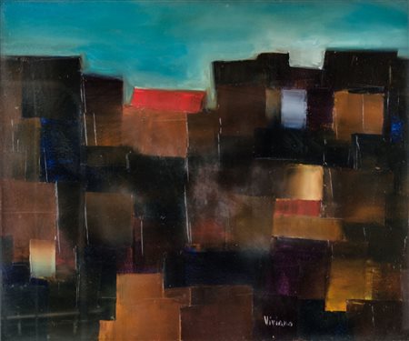 LORENZO VIVIANO (Caltanissetta 1932) OLIO su tela "tetti", firmato in basso a destra. Datato 1964 Misure: cm 60 x 50