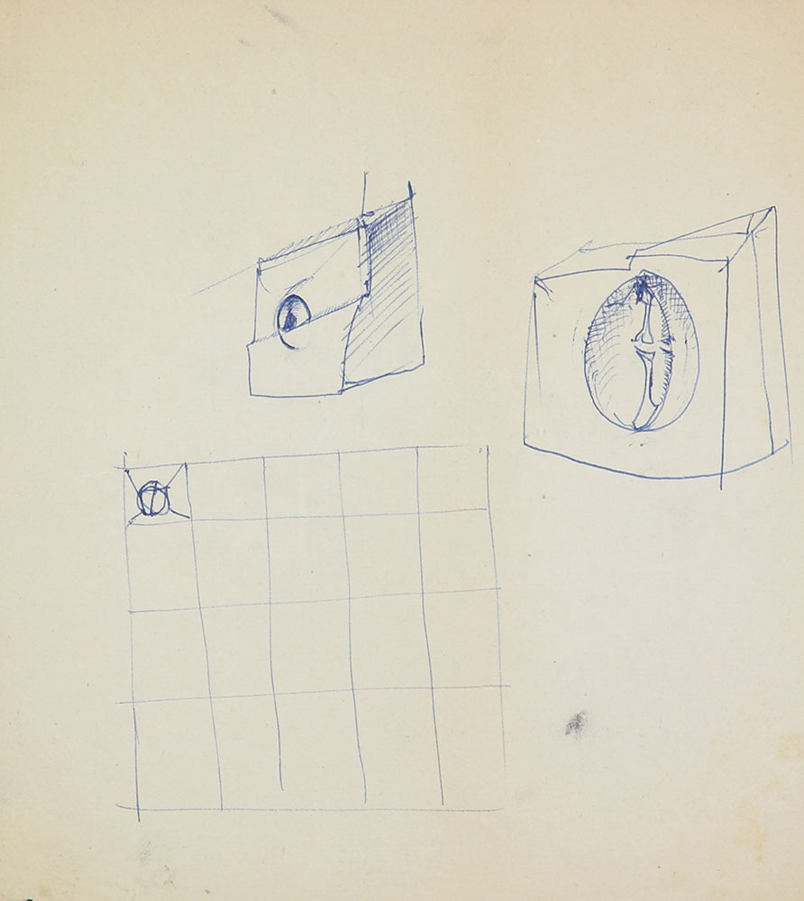 Scanavino Emilio Senza titolo, (anni '60) biro su carta, cm. 24x21 etichetta Galleria Valente Arte Contemporanea di Finale Ligure al retro della cornice