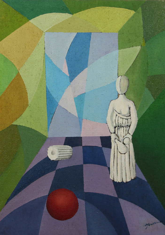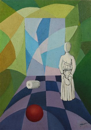 Anonimo Senza titolo olio su tela grezza, cm. 70x50 firma indecifrata in basso a destra, timbro "Cinque Fiori Bottega d'Arte di Milano" al retro senza cornice