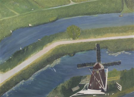 Anonimo Paesaggio Olandese olio su tela applicata su tavola, cm. 45x60