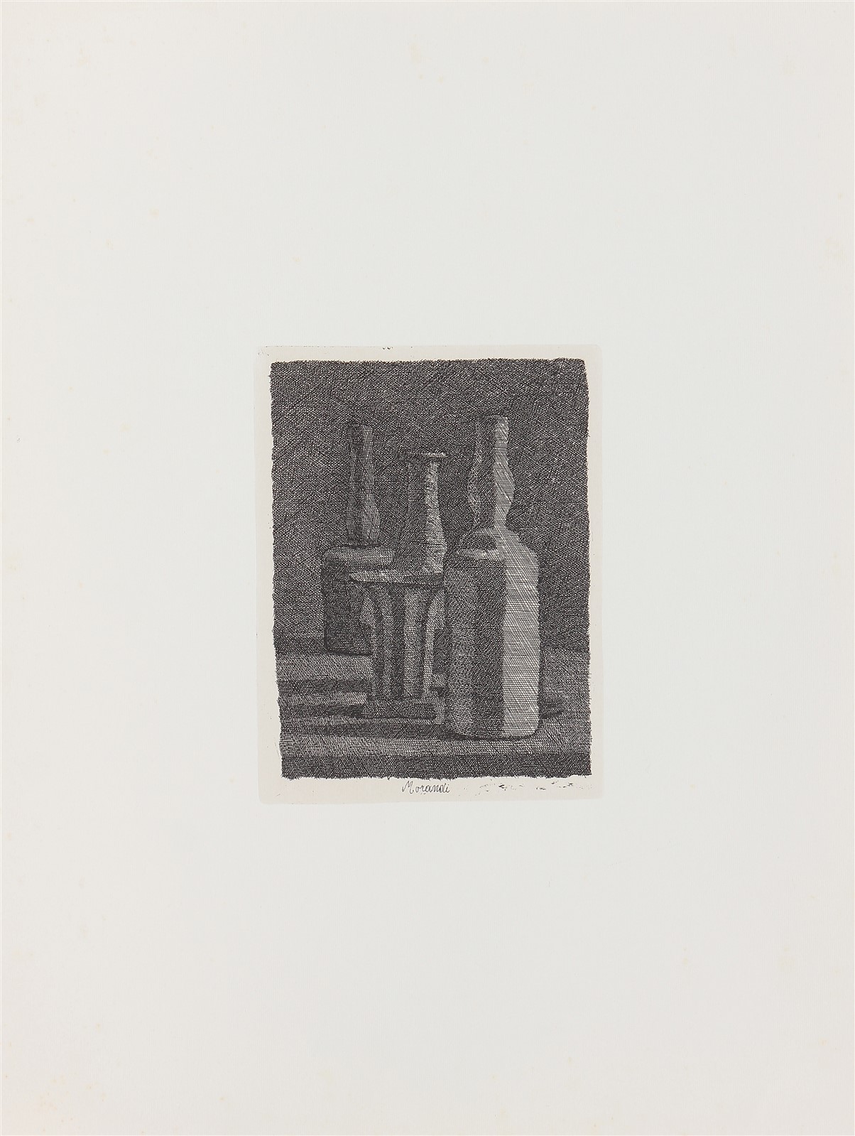 MORANDI GIORGIO (1890 - 1964) Cartella di incisioni. Lotto composto da n. 5 grafiche. Stampa. Cm 34,00 x 44,00. Dimensioni lastre: 17x13cm, 28.5x24.5 cm, 24x29cm, 25x32cm, 30x39cm. Tutte le grafiche sono firmate e datate a stampa e sono riproduzioni dagli originali. Al retro timbro Collezionismo Opere d'Arte Nazionali/ Europee/Mondiali.