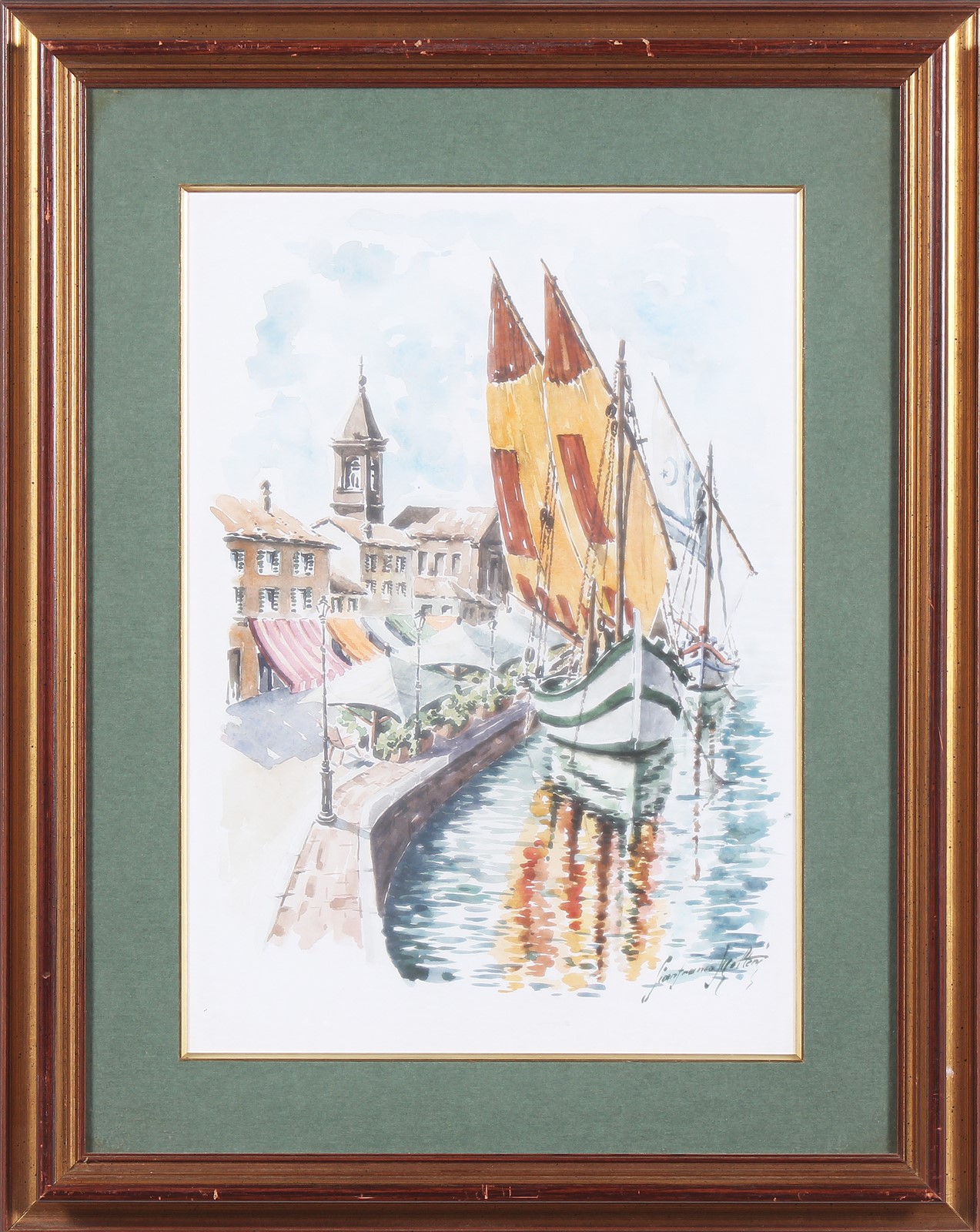 MOLTENI GIANFRANCO Canale Cesenatico Burchiello. Acquarello su carta. Cm...