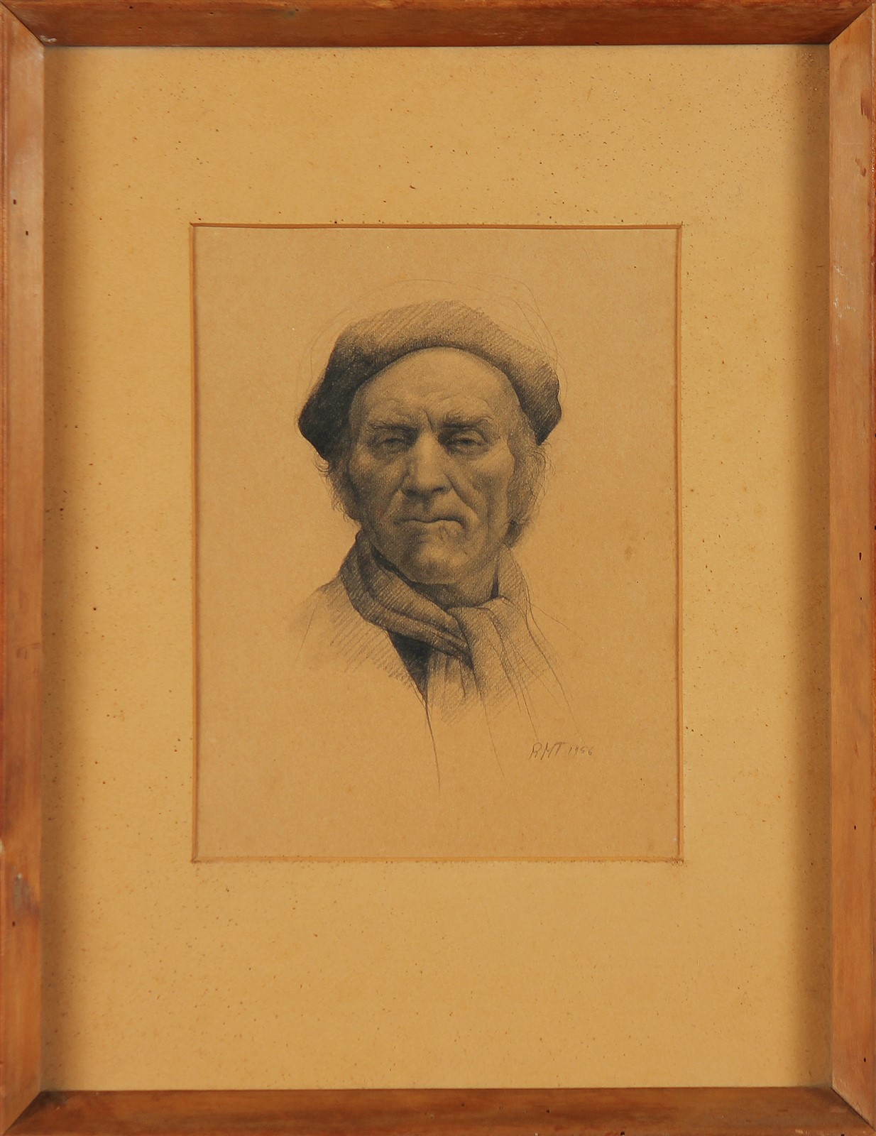 ANONIMO Ritratto d'uomo. 1956. Matita su carta. Cm 20,00 x 25,00. Monogrammato in basso a destra RMT 1956. Cornice presente