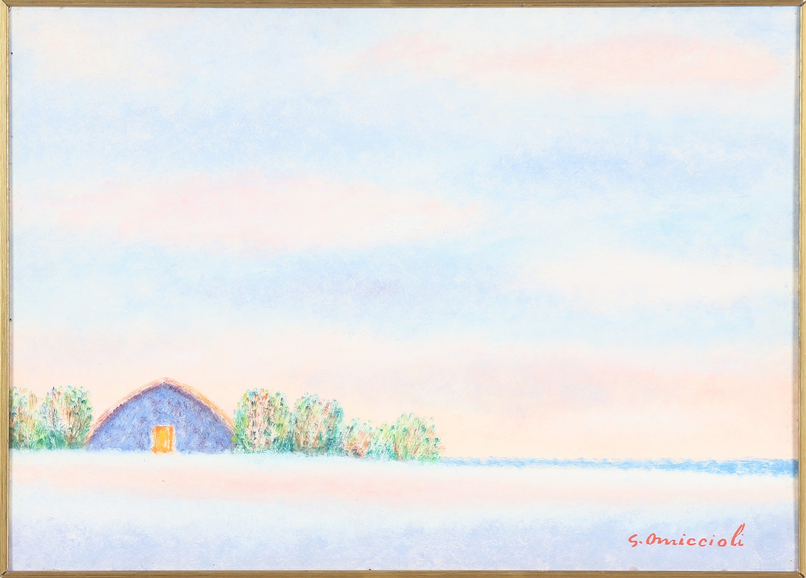 OMICCIOLI GIOVANNI (1901 - 1975) Senza titolo. Olio su carta applicata su tavoletta. Cm 50,00 x 35,00. Firma in basso a destra. Al retro firma per autentica.