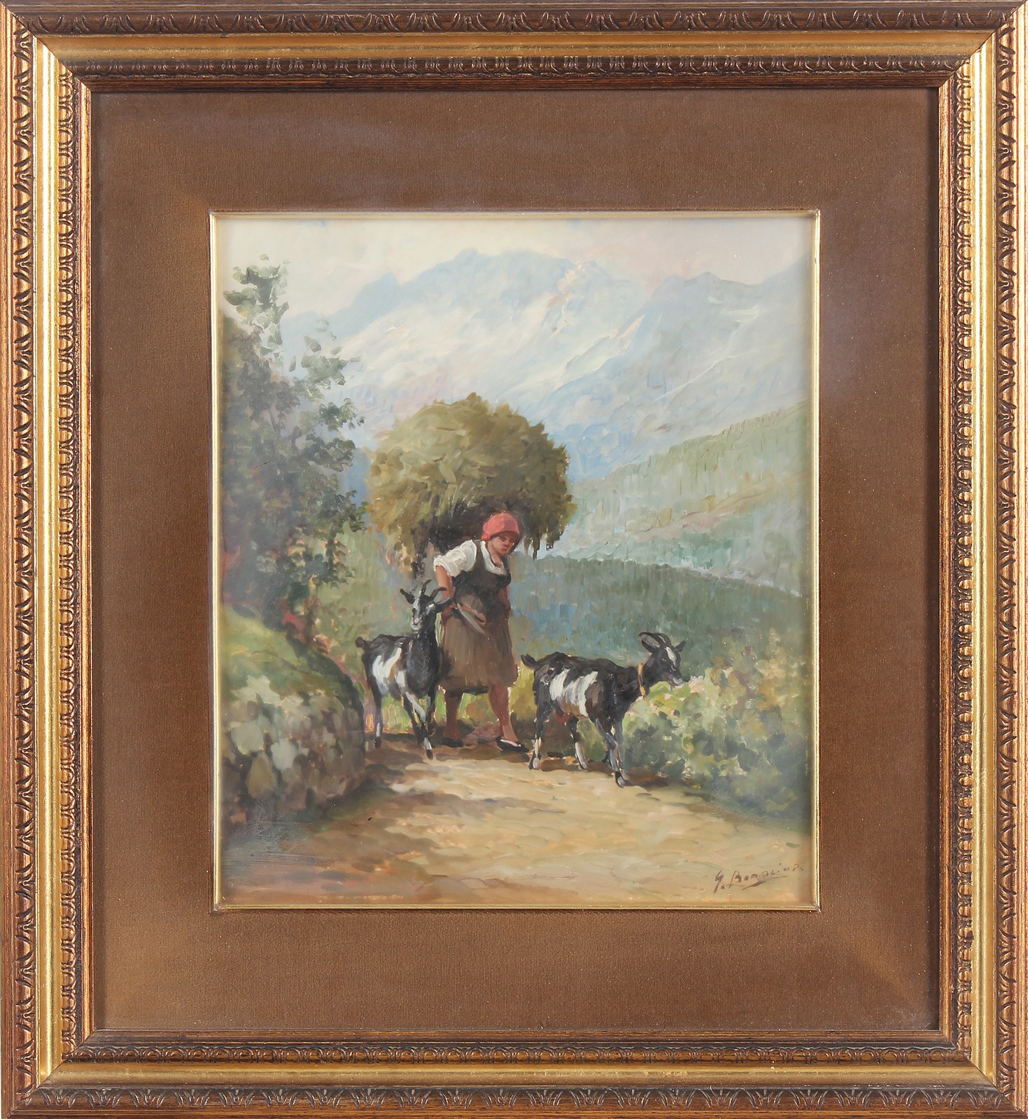 BONACINA GIUSEPPE (n. 1955) Pastorella. Olio su compensato. Cm 28,50 x 33,50. Firma in basso a destra. Cornice presente