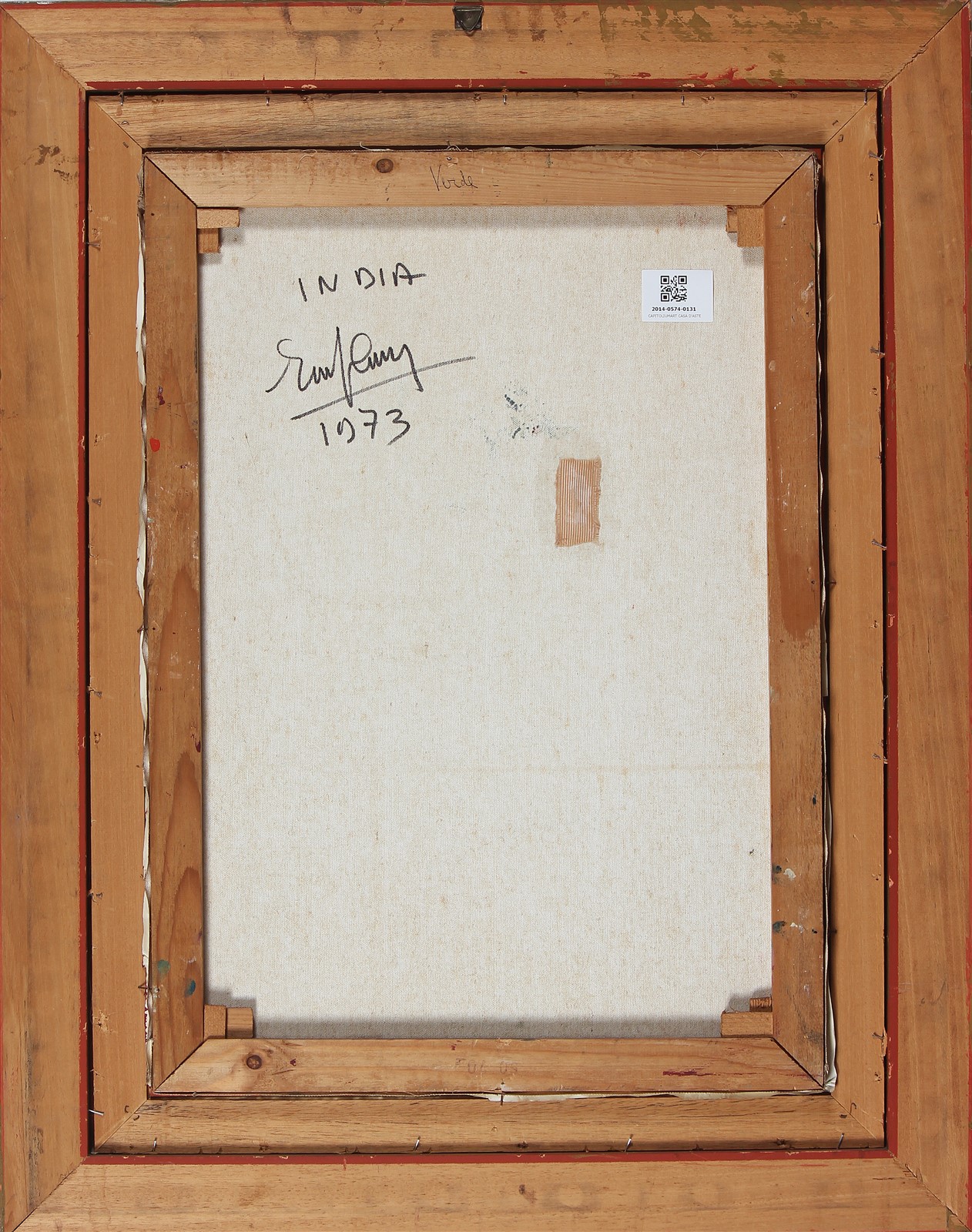 FILIPPINI ENZO (1924 - 2001) India. 1973. Tecnica mista su carta su tela. Cm 70,00 x 50,00. Firma in basso a destra. Firma, data e titolo al retro.