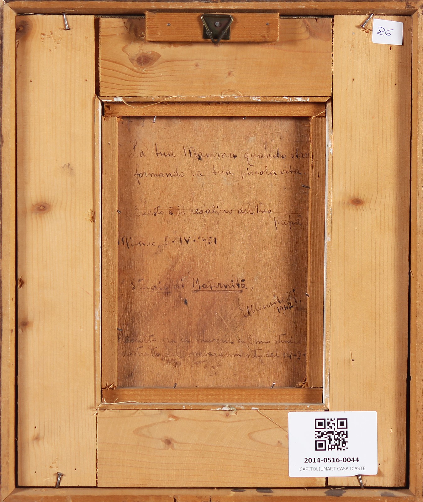 MUSITELLI GIULIO VITO (1901 - 1990) Studio di maternità. 1951. Olio su tavola. Cm 14,00 x 18,00. Firma, anno, titolo e dedica al retro.