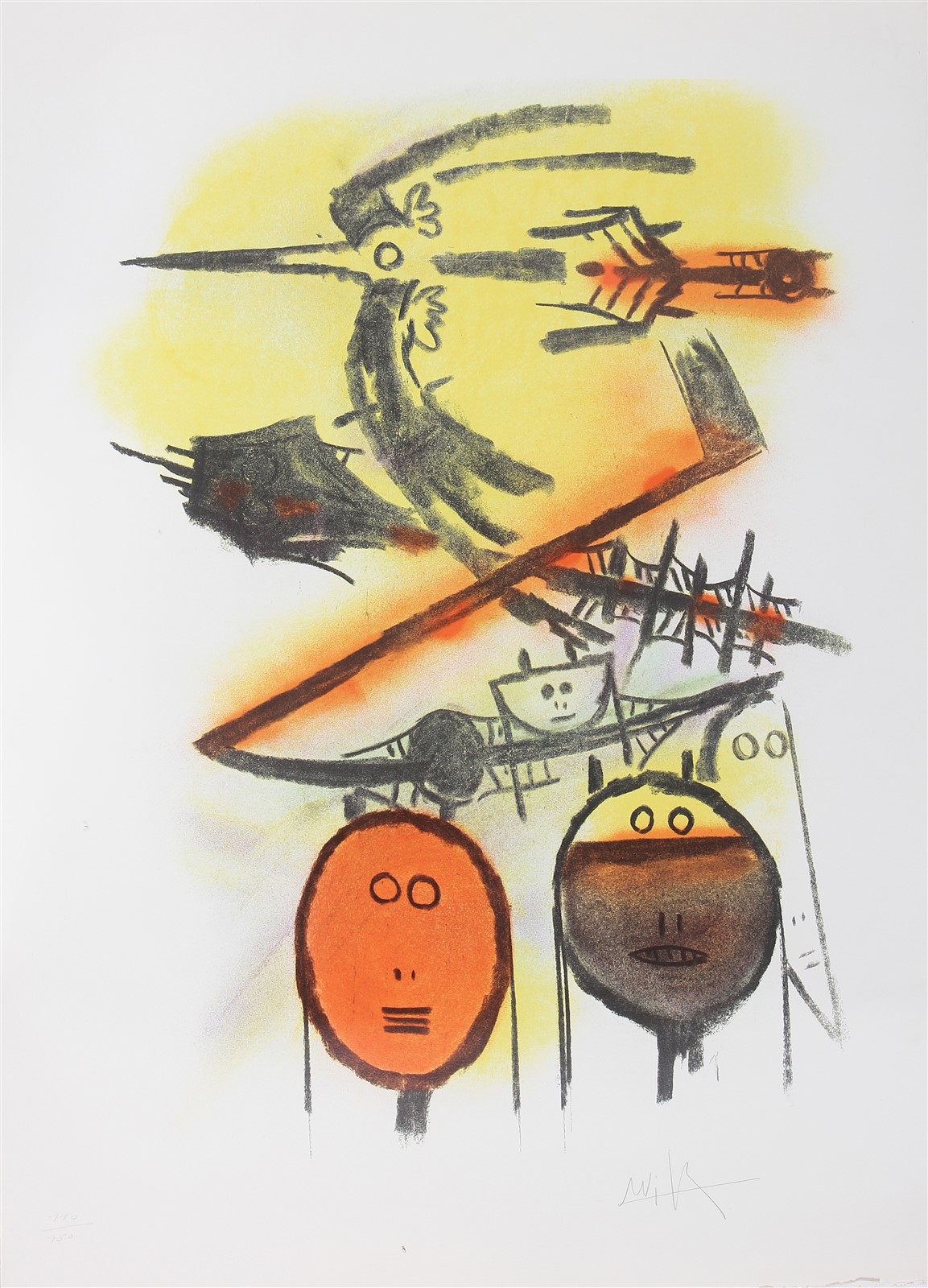 LAM WIFREDO (1902 - 1982) Senza titolo. Litografia. Cm 70,00 x 100,00. 110/150. Tiratura e firma a matita in basso.