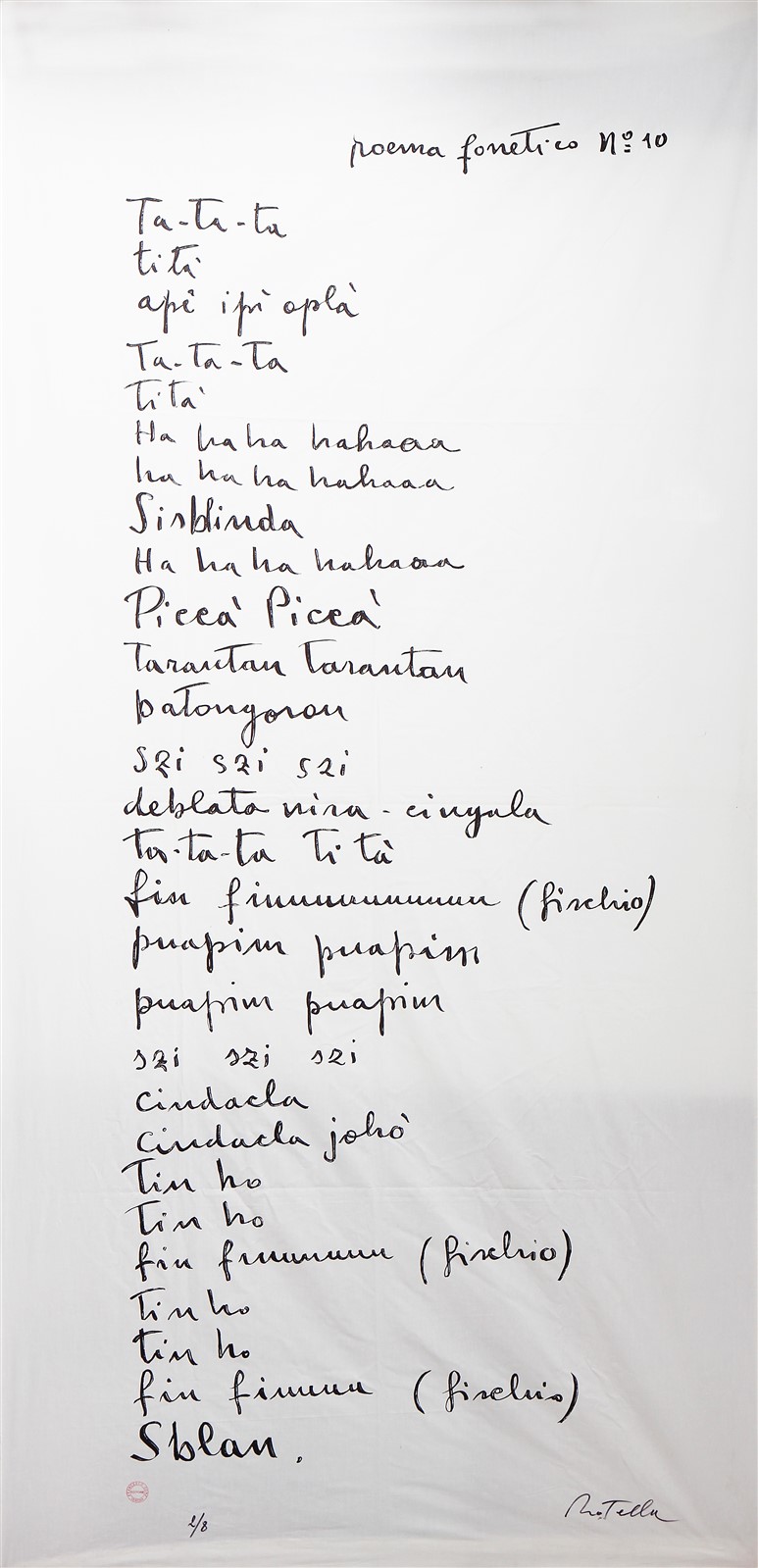 ROTELLA MIMMO (1918 - 2006) Senza titolo. Serigrafia su tela. Cm 124,00 x 252,00. 2/8. Tiratura e firma in basso; timbro a cura di Francesco Conz Editore, Verona.