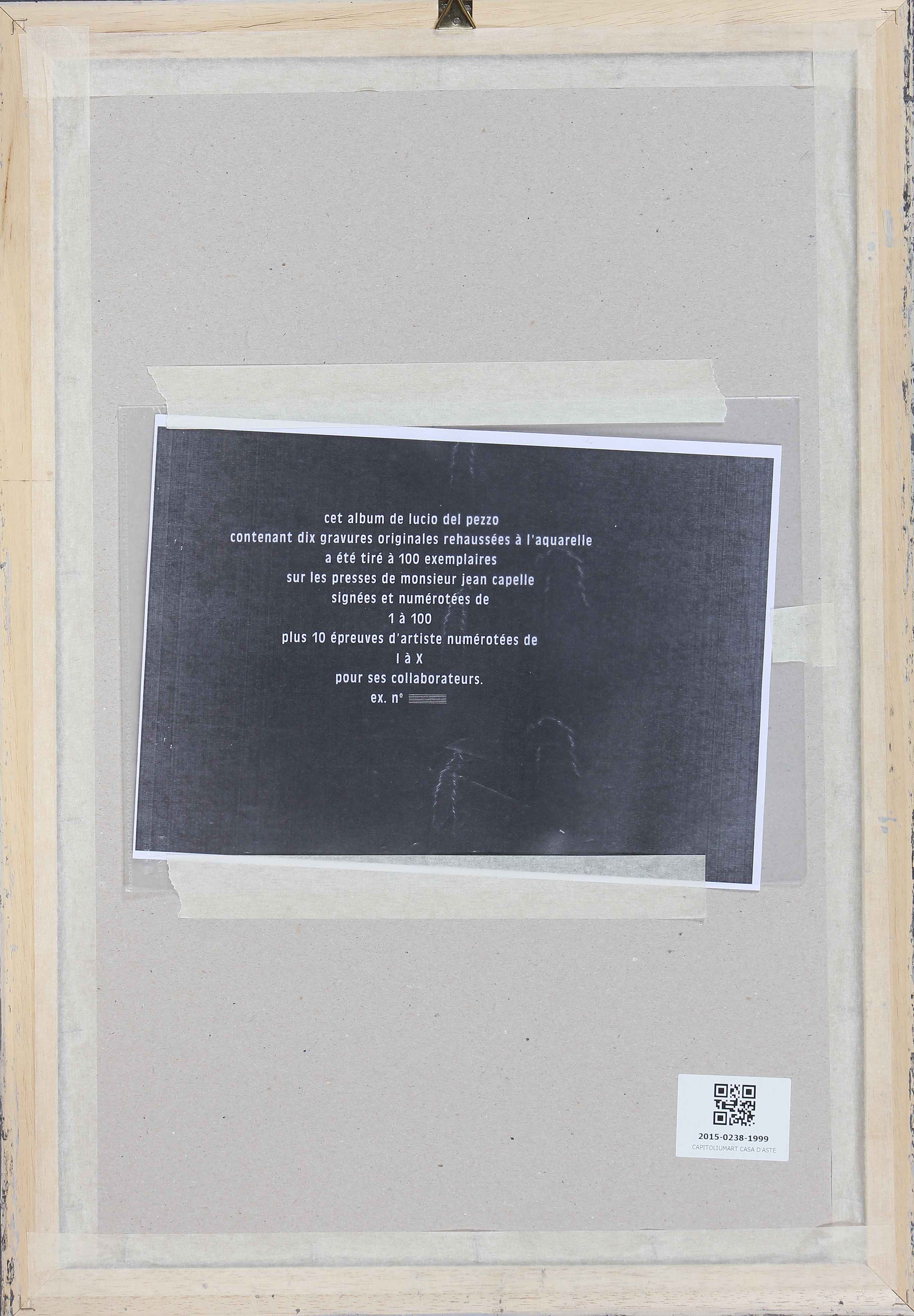 DEL PEZZO LUCIO (n. 1933) Senza titolo. Acquaforte. Cm 56,00 x 36,00. 56/100. Tiratura e firma a matita in basso al centro. Dimensione lastra: 30x24 cm. Cornice presente