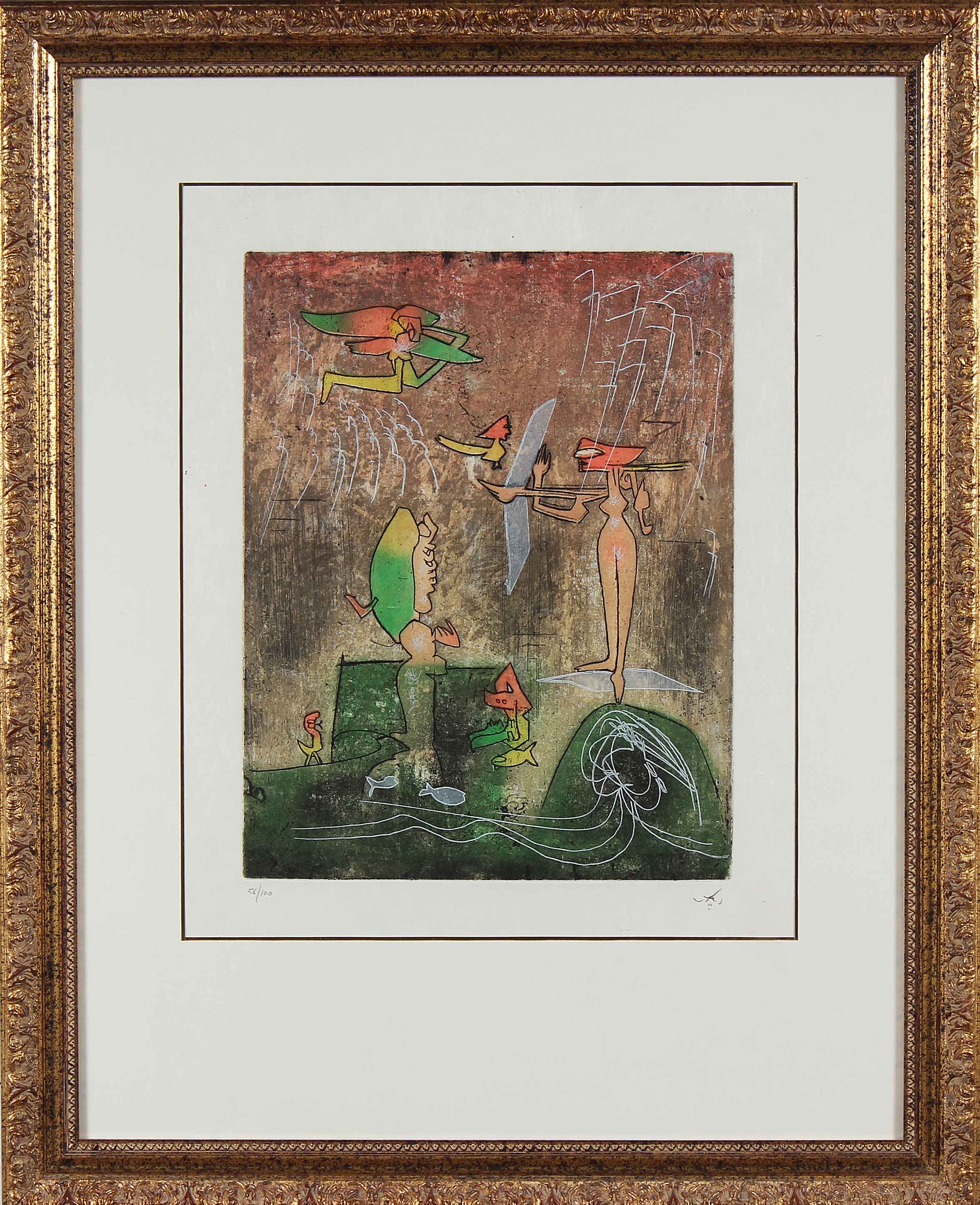 MATTA ROBERTO SEBASTIAN ANTONIO (1911 - 2002) Senza titolo. Acquaforte, acquatinta. Cm 40,00 x 50,00. 56/100. Tiratura e firma in basso a matita. Dimensione lastra: cm 40,5x30,5. Edizioni Bora snc come da timbro al retro. Cornice presente