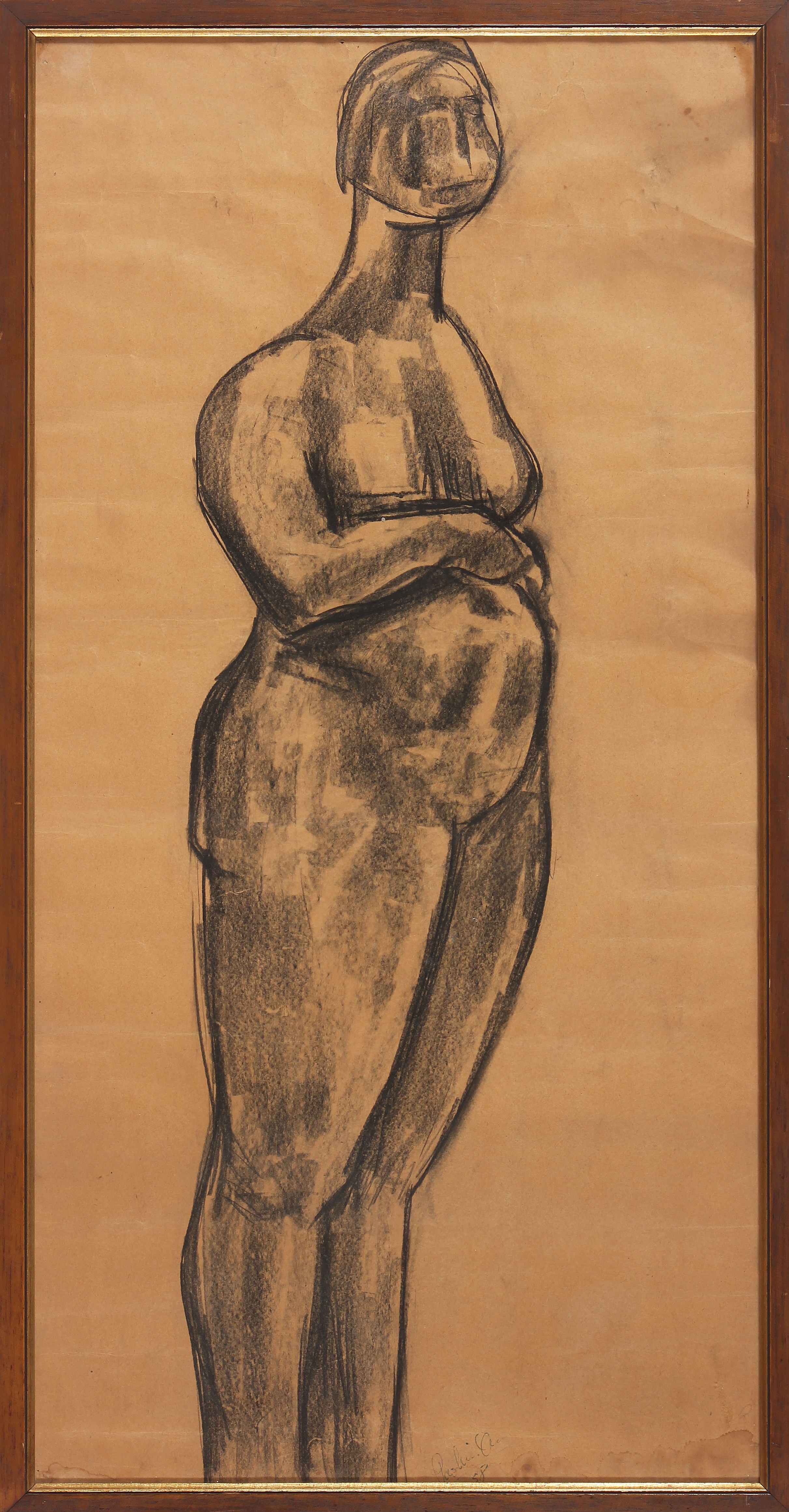 ANONIMO Figura. 1958. Tecnica mista su carta. Cm 38,00 x 78,00. Firmato...