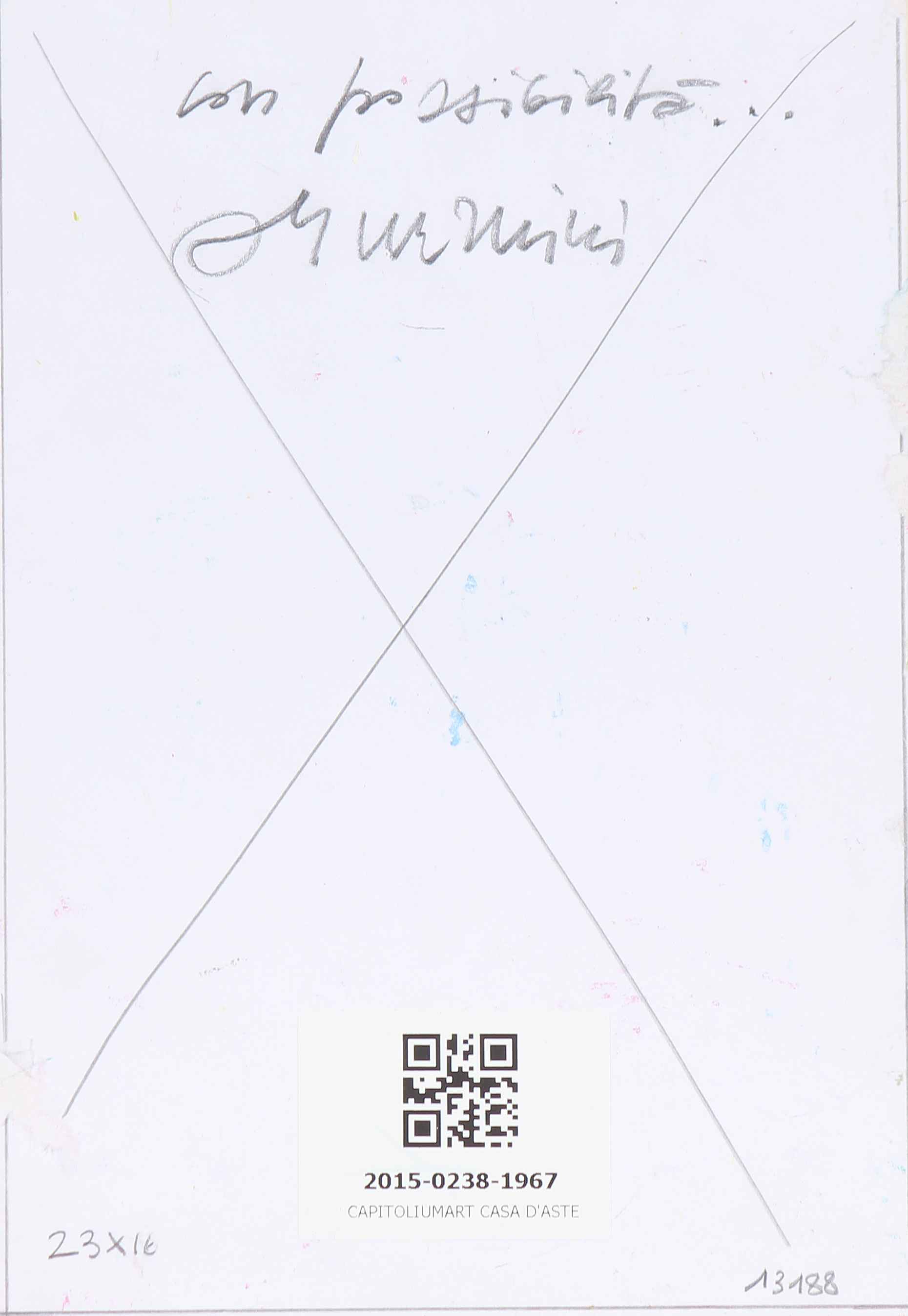 GUARNIERI ODDINO (n. 1932) Con possibilità. Tecnica mista su carta. Cm 16,00 x 23,00. Firma in basso a destra. Al retro titolo e firma.