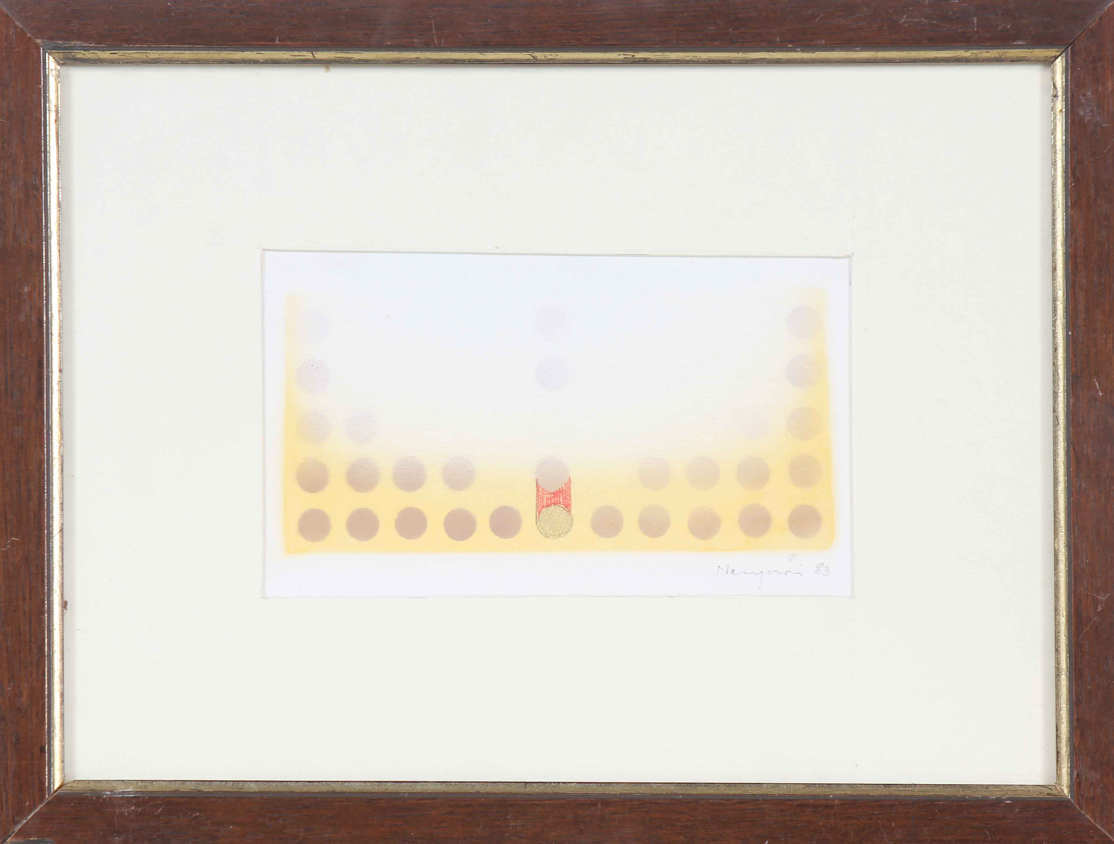 NANGERONI CARLO (n. 1922) Senza titolo. 1983. Tecnica mista su carta. Cm 15,50 x 9,00. Firma e anno in basso a destra. Cornice presente