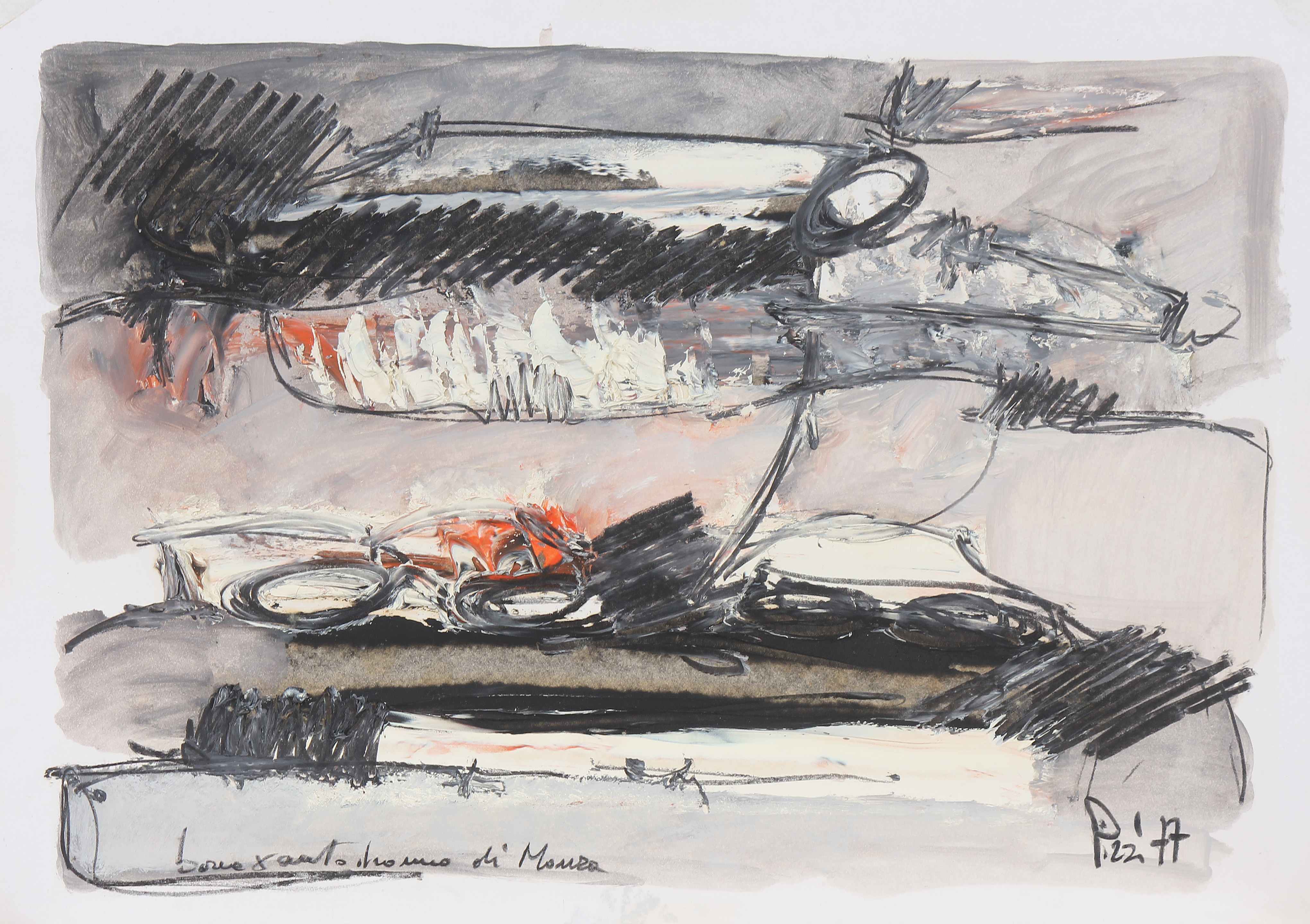 PIZZI PIERO (n. 1955) Senza titolo. Olio su carta. Cm 29,00 x 41,00.