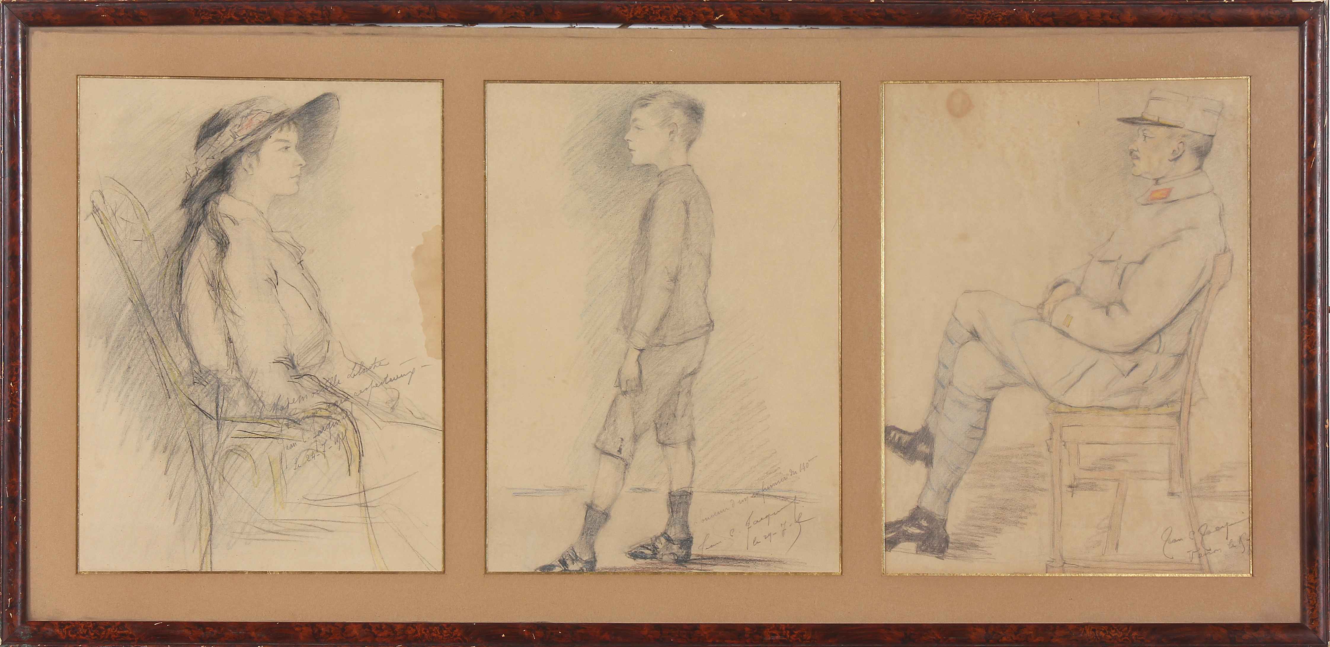 ANONIMO Lotto composto da n.3 disegni firmati in un'unica cornice. Disegno....
