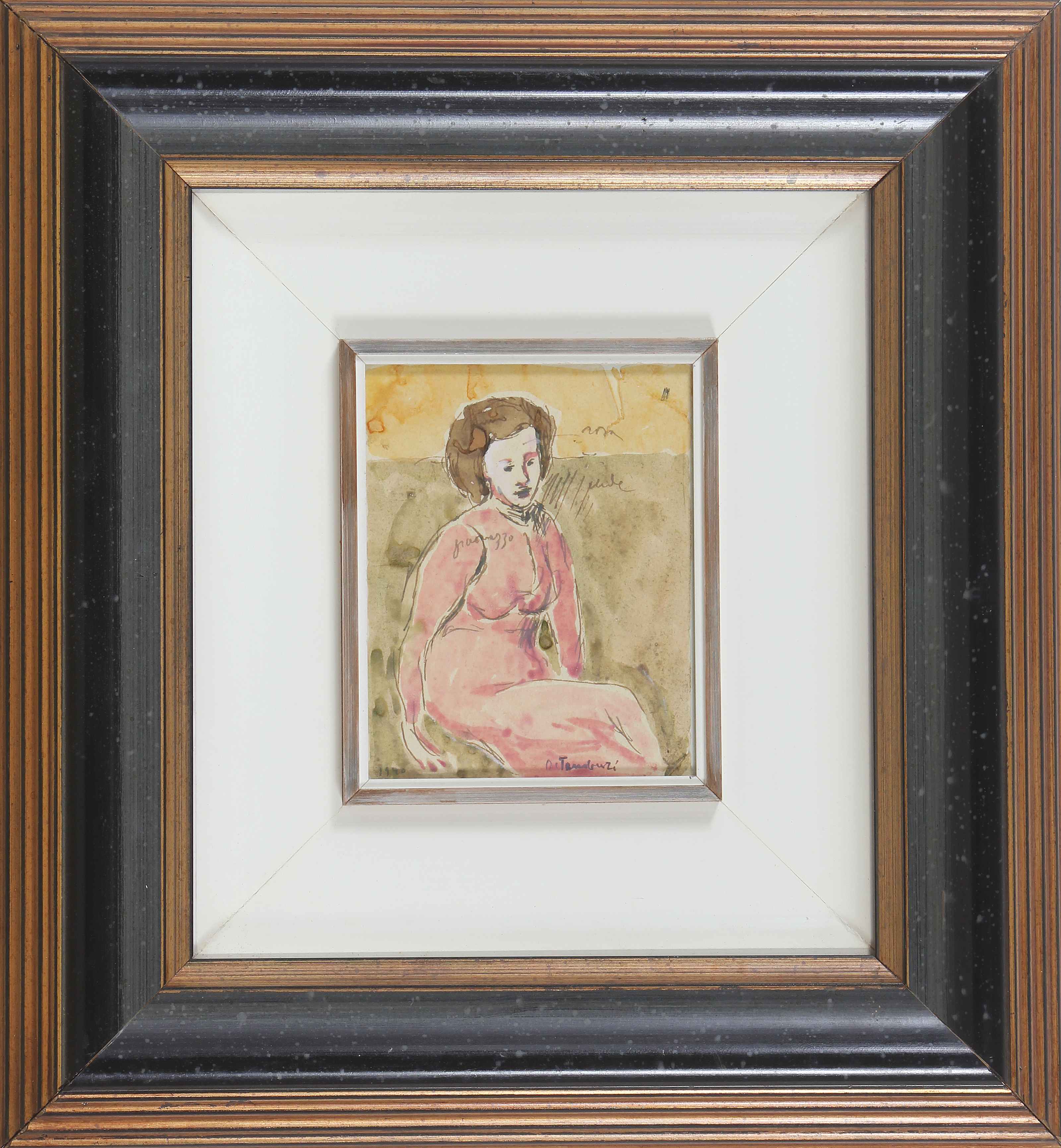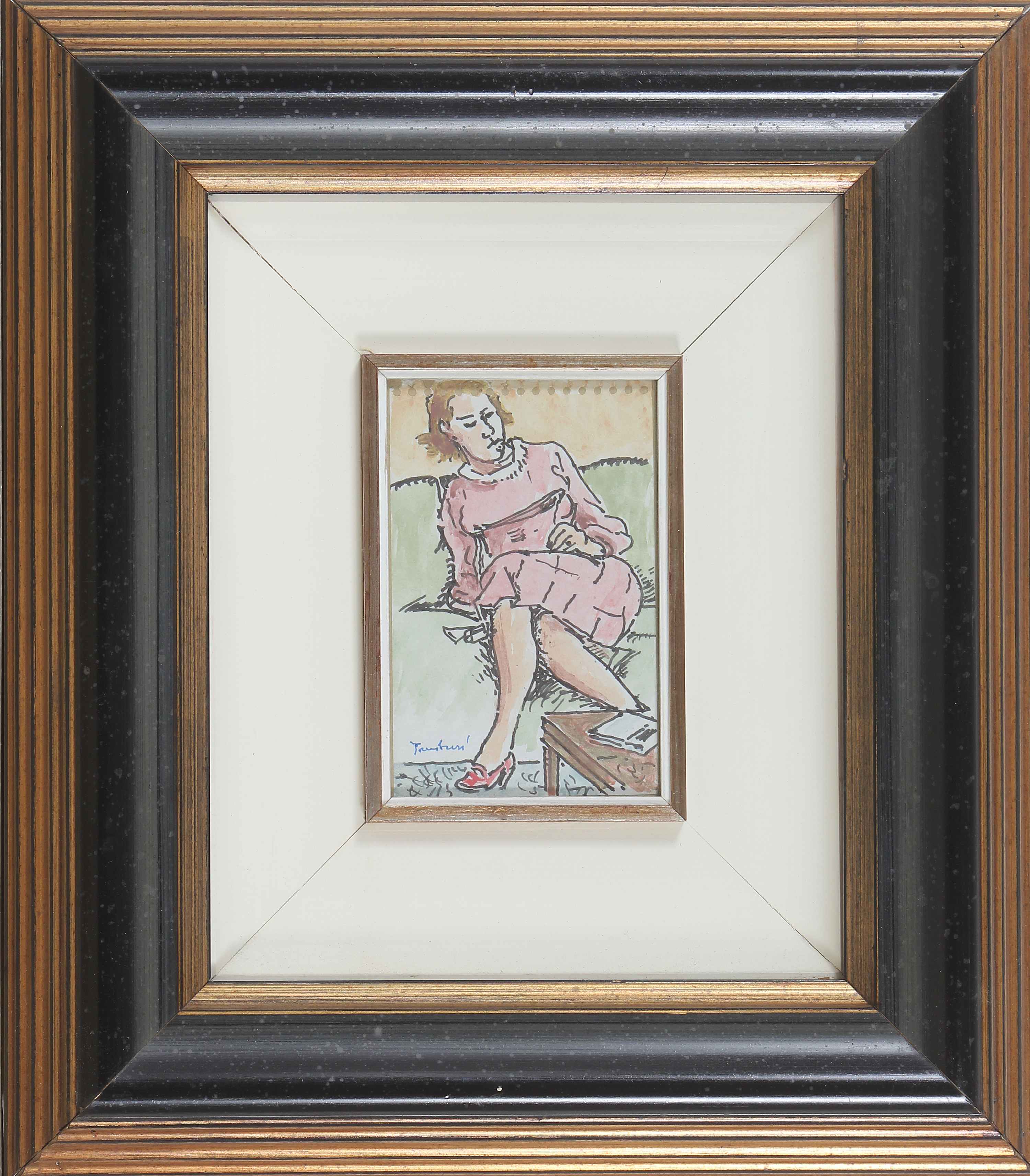 TAMBURI ORFEO (1910 - 1994) Sul divano. Acquerello . Cm 9,00 x 14,00. Firmato in basso a sinistra. Autentica dell'artista su fotografia.