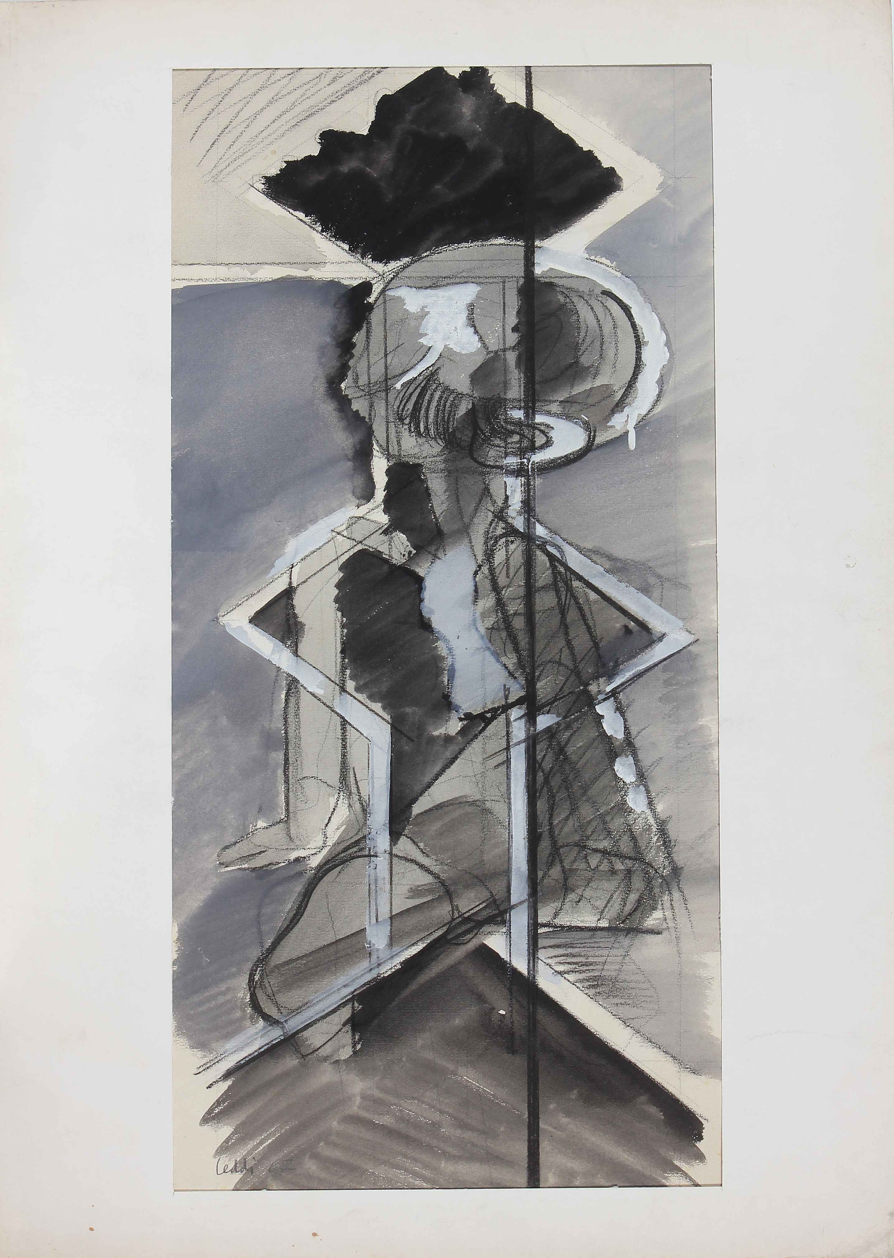 LEDDI PIERO (n. 1930) Senza titolo. Tecnica mista su carta. Cm 43,00 x 66,00. Firma e anno in basso a destra.
