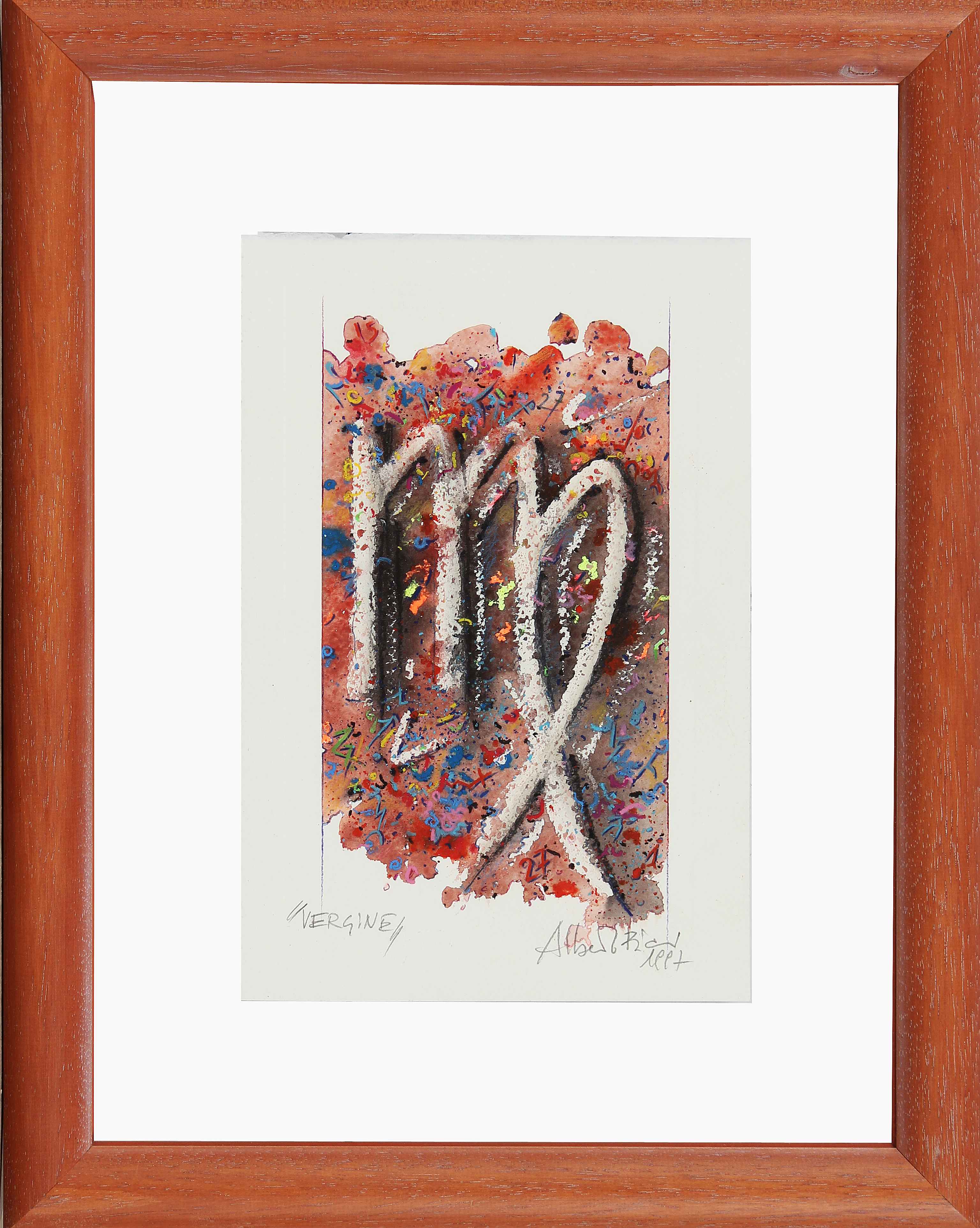 BIASI ALBERTO (n. 1937) Vergine. 1997. Acquerello . Cm 28,00 x 20,00. Firma, data e titolo in basso. Al retro dedica. Cornice presente