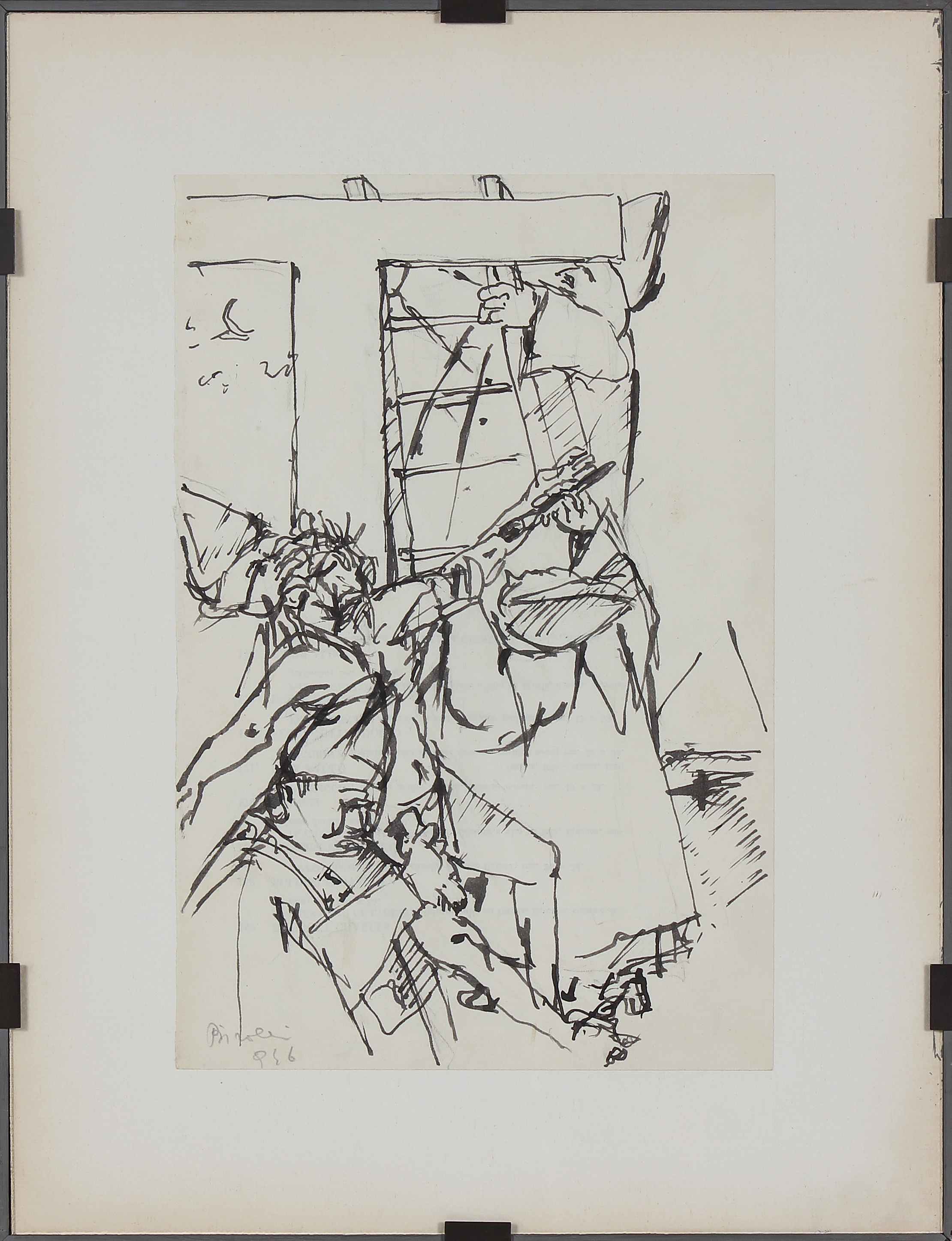 BIROLLI RENATO (1905 - 1959) Senza titolo. 1946. China su carta. Cm 21,00 x 31,00. Firma e anno in basso a sinistra. Cornice presente