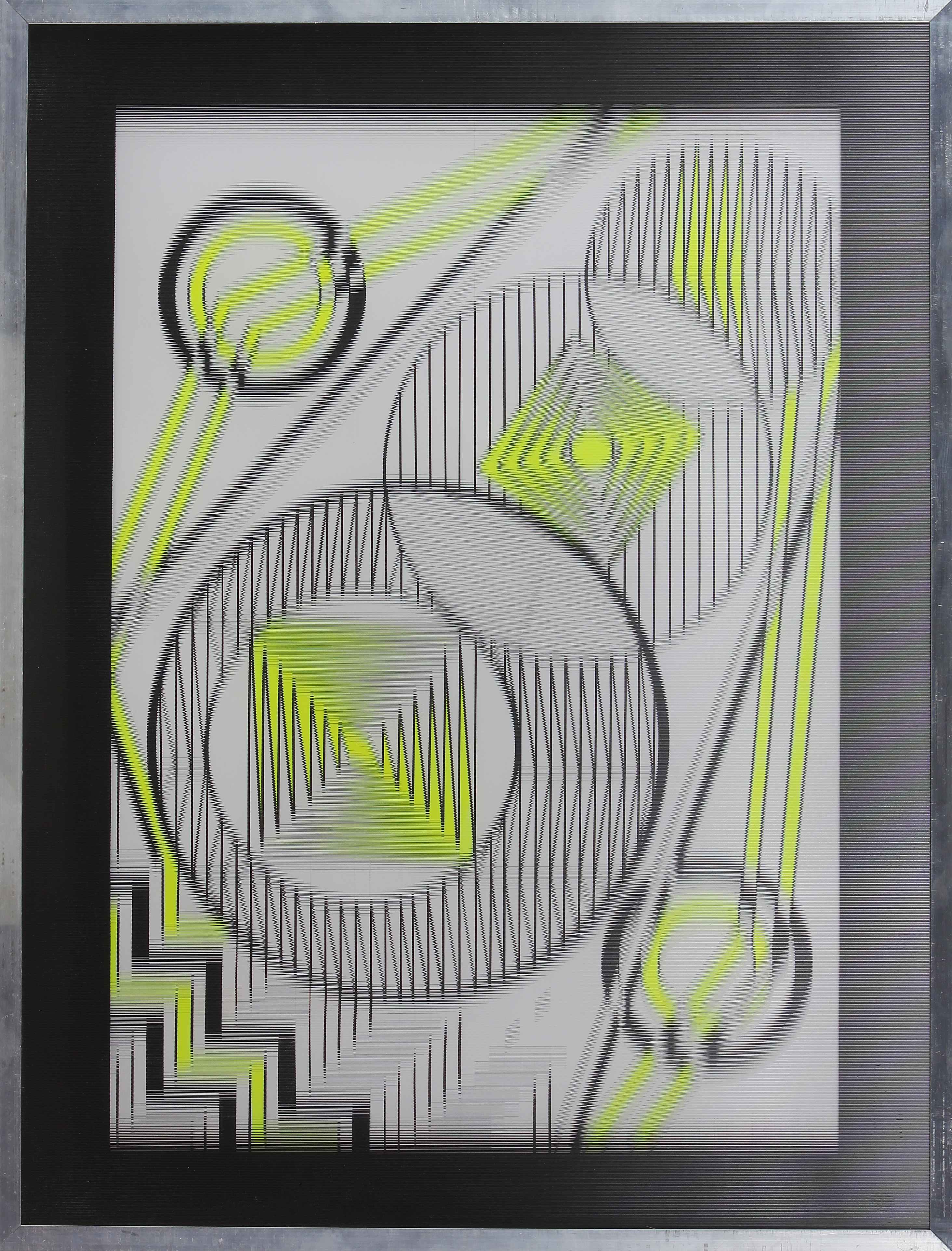BALDESSARI GUIDO (n. 1938) Vibrazione in giallo. 1976. Tecnica mista su cartone e plexi. Cm 70,00 x 50,00. Al retro cartiglio descrittivo e timbro Guido Baldessari, Venezia. Certificato di autenticità dell'opera con firma e timbro dell'autore a cura della Galleria d'Arte Contemporanea, Mestre - Venezia con relativo numero d'inventario. Cornice presente