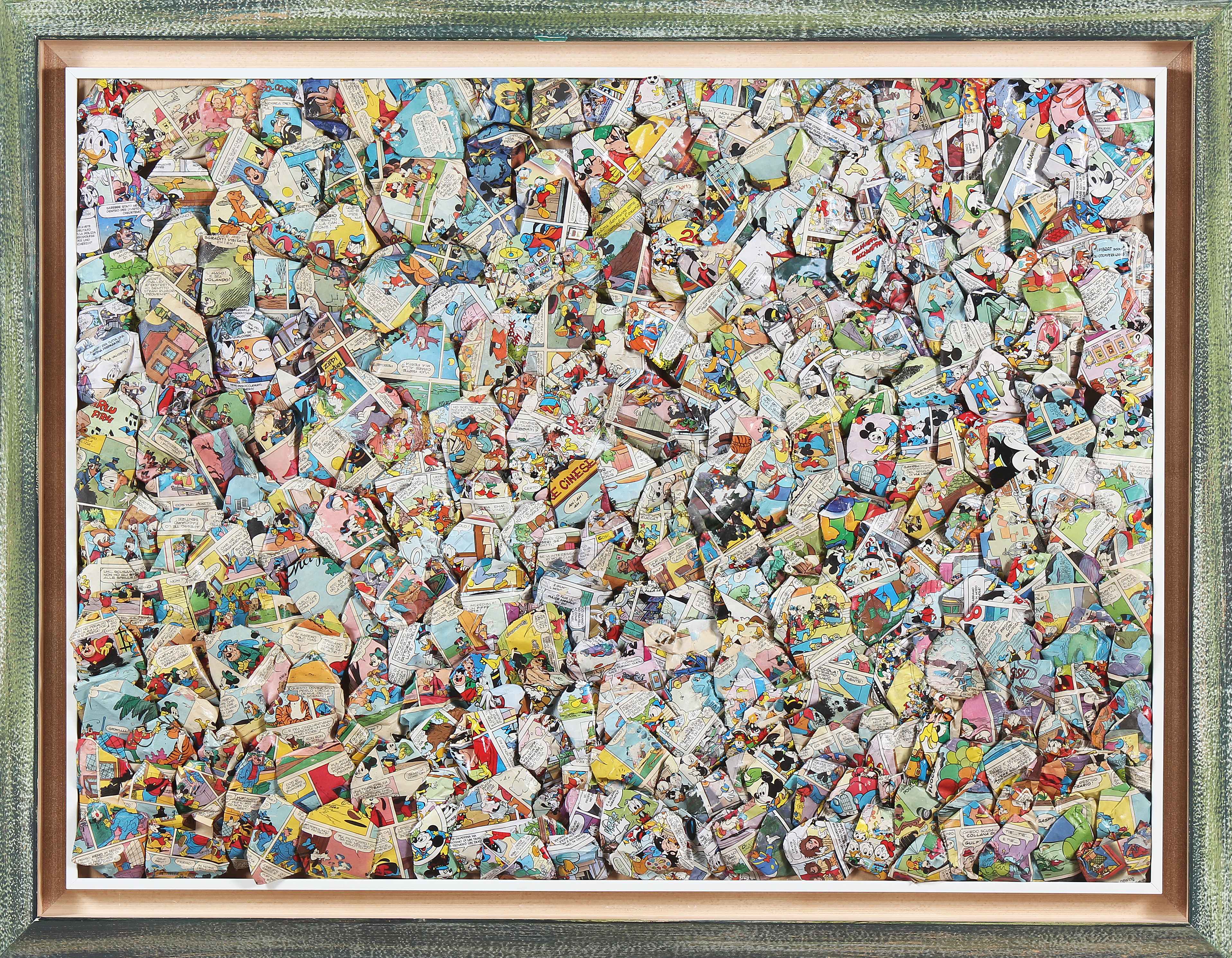 CARMASSI ARTURO (n. 1925) Applicazione topolino. 2002. Tecnica mista e collage su carta. Cm 80,00 x 60,00. Al retro firma e anno.Autentica dell'artista su fotografia. Cornice presente