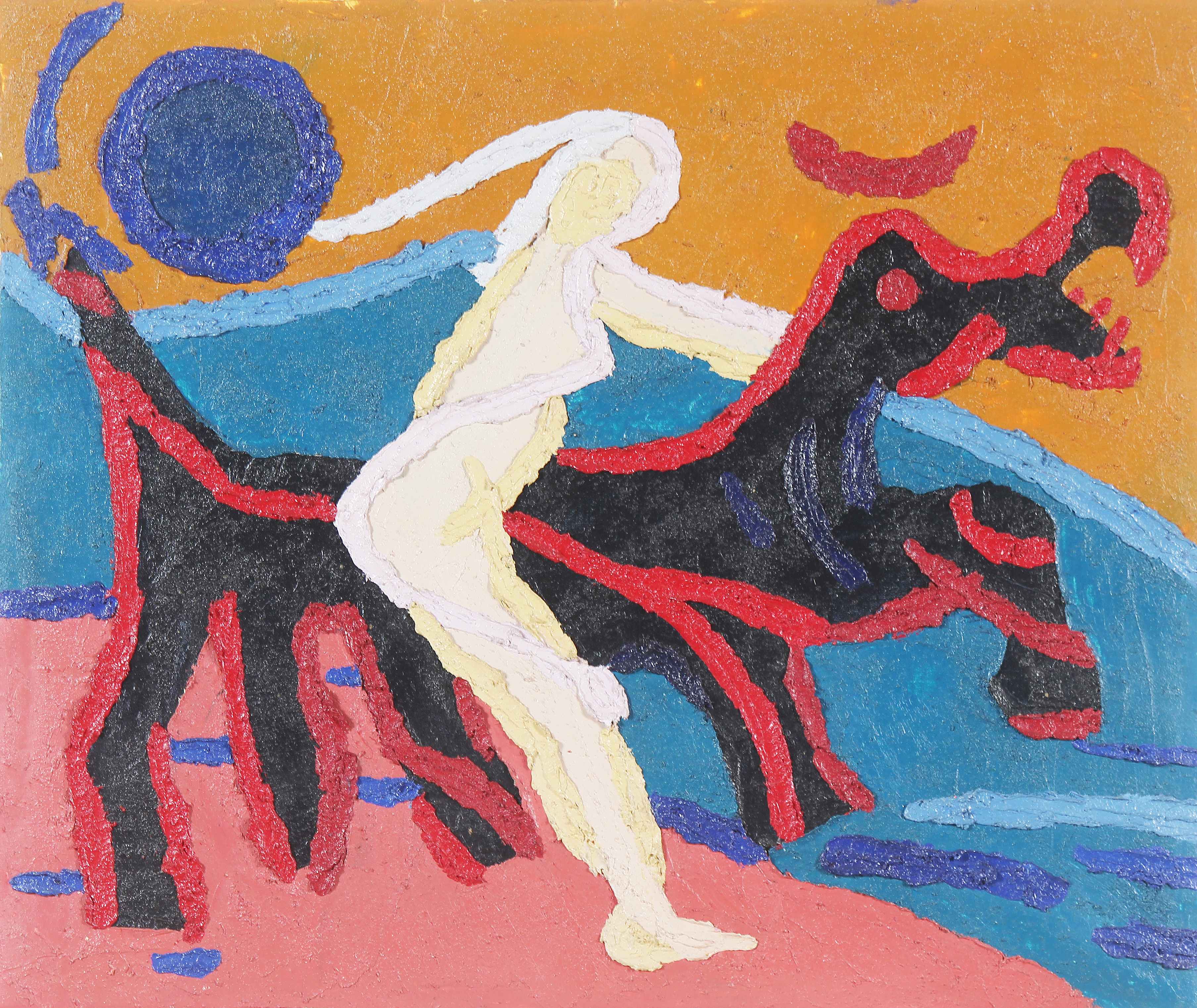 Lot 471 | NASTASIO ALESSANDRO (n. 1934) Donna che cavalca il mio mostro. 1975. Olio su...