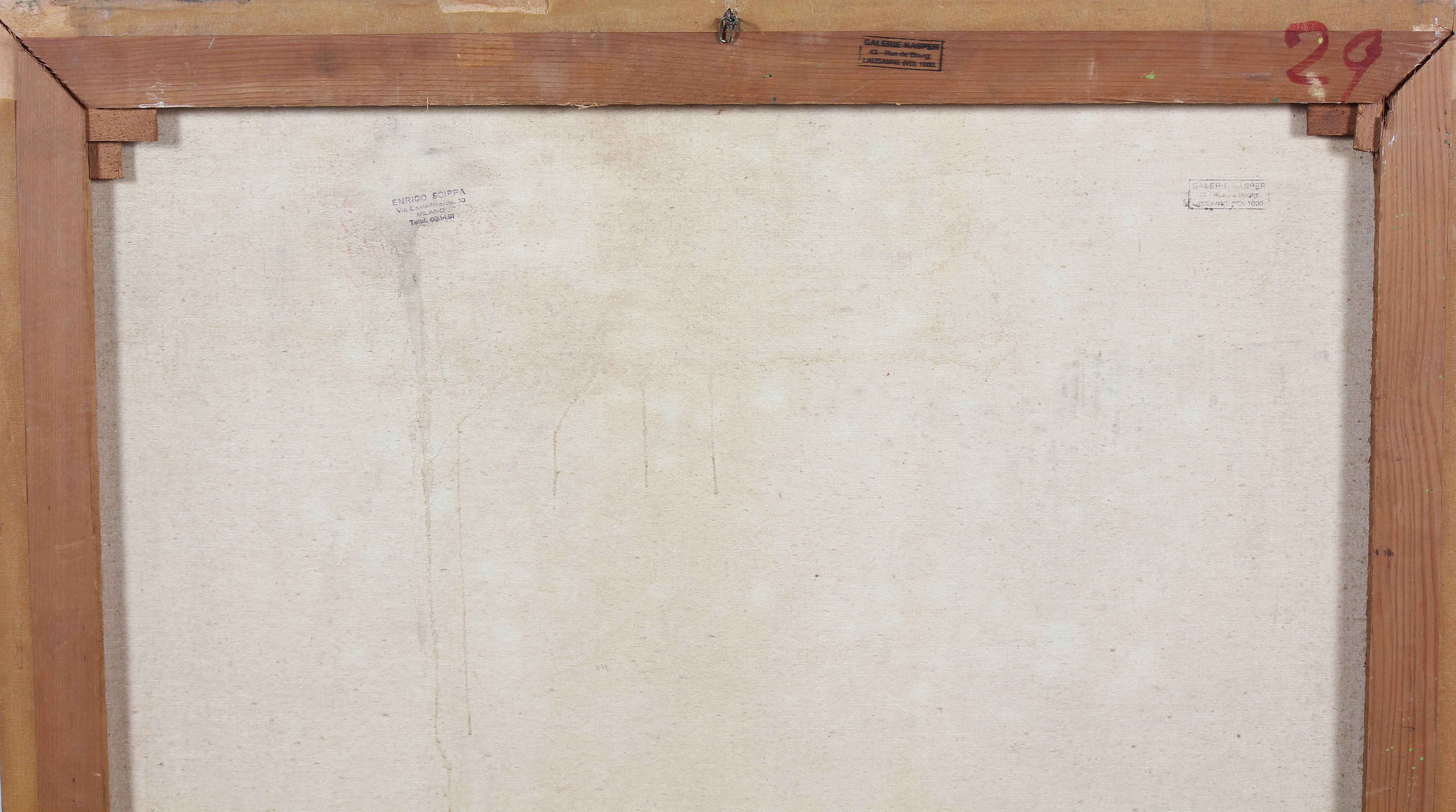 SCIPPA ENRICO (n. 1937) Senza titolo. Olio su tela . Cm 80,00 x 80,00. Al retro timbro dell'artista e timbro della Galerie Kasper, Lausanne.