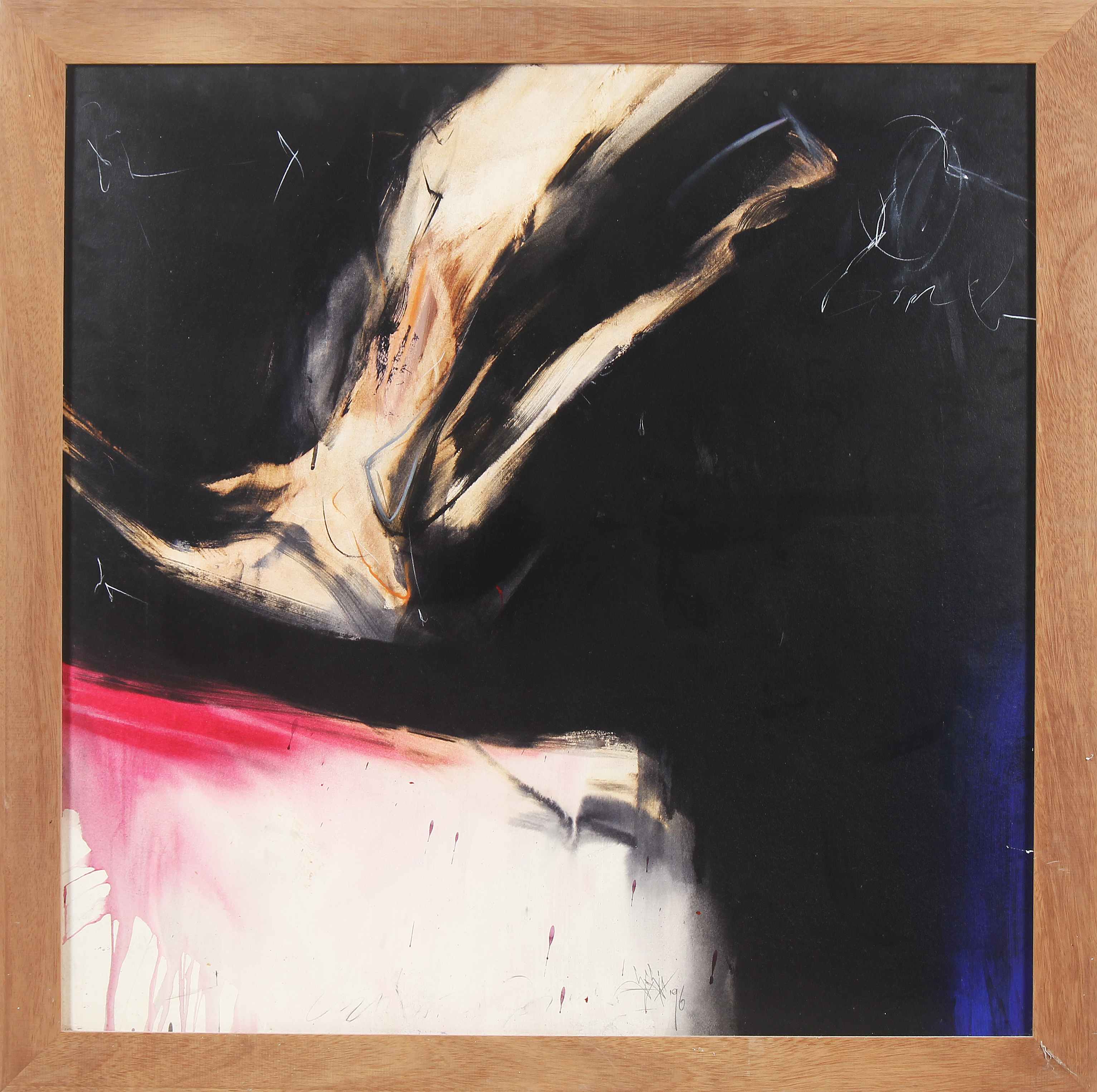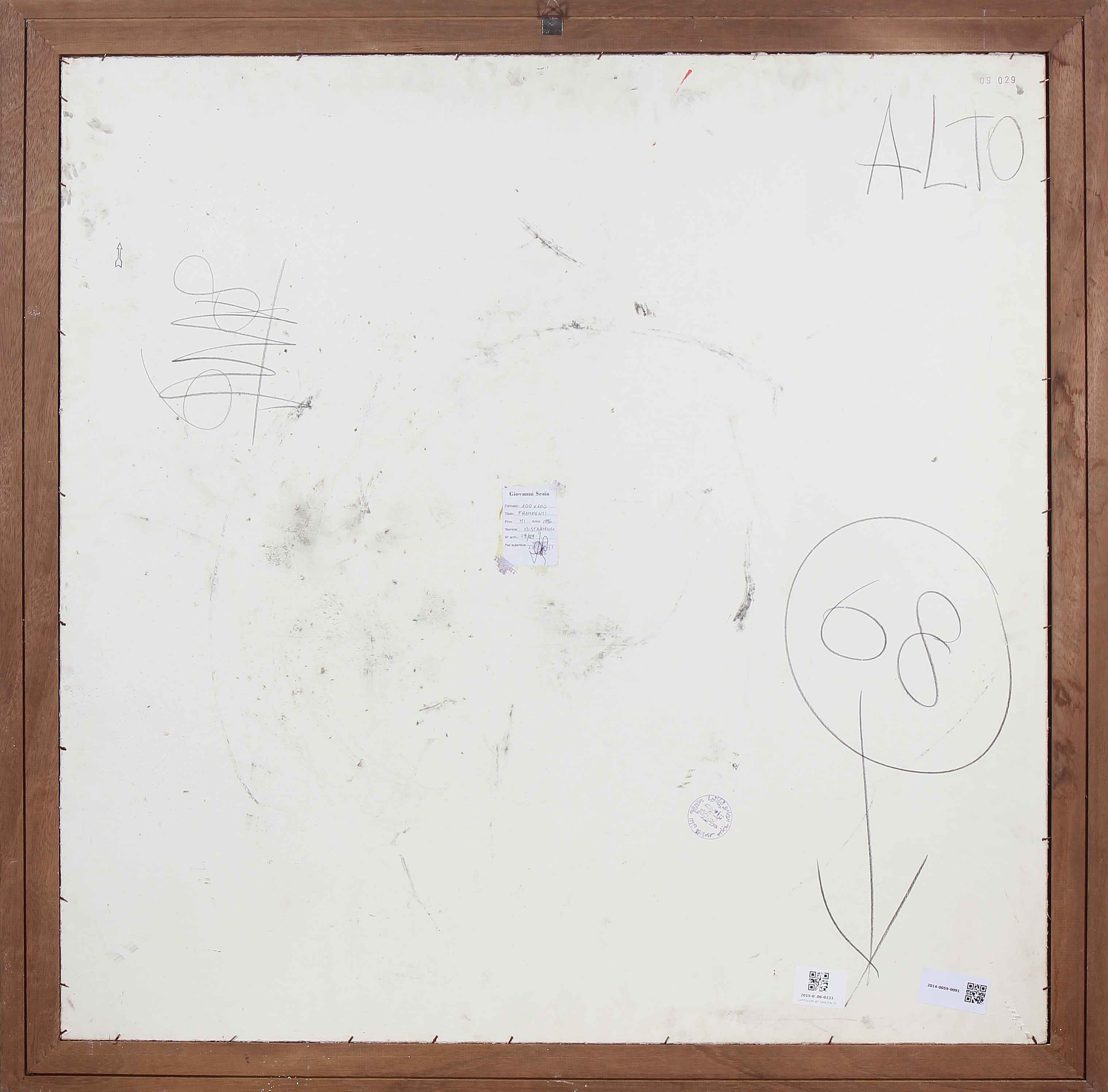 SESIA GIOVANNI (n. 1955) Frammenti. 1996. Tecnica mista su tavola. Cm 100,00 x 100,00. Firma e anno in basso. Al retro cartiglio per autentica con relativo numero d'archivio. Cornice presente