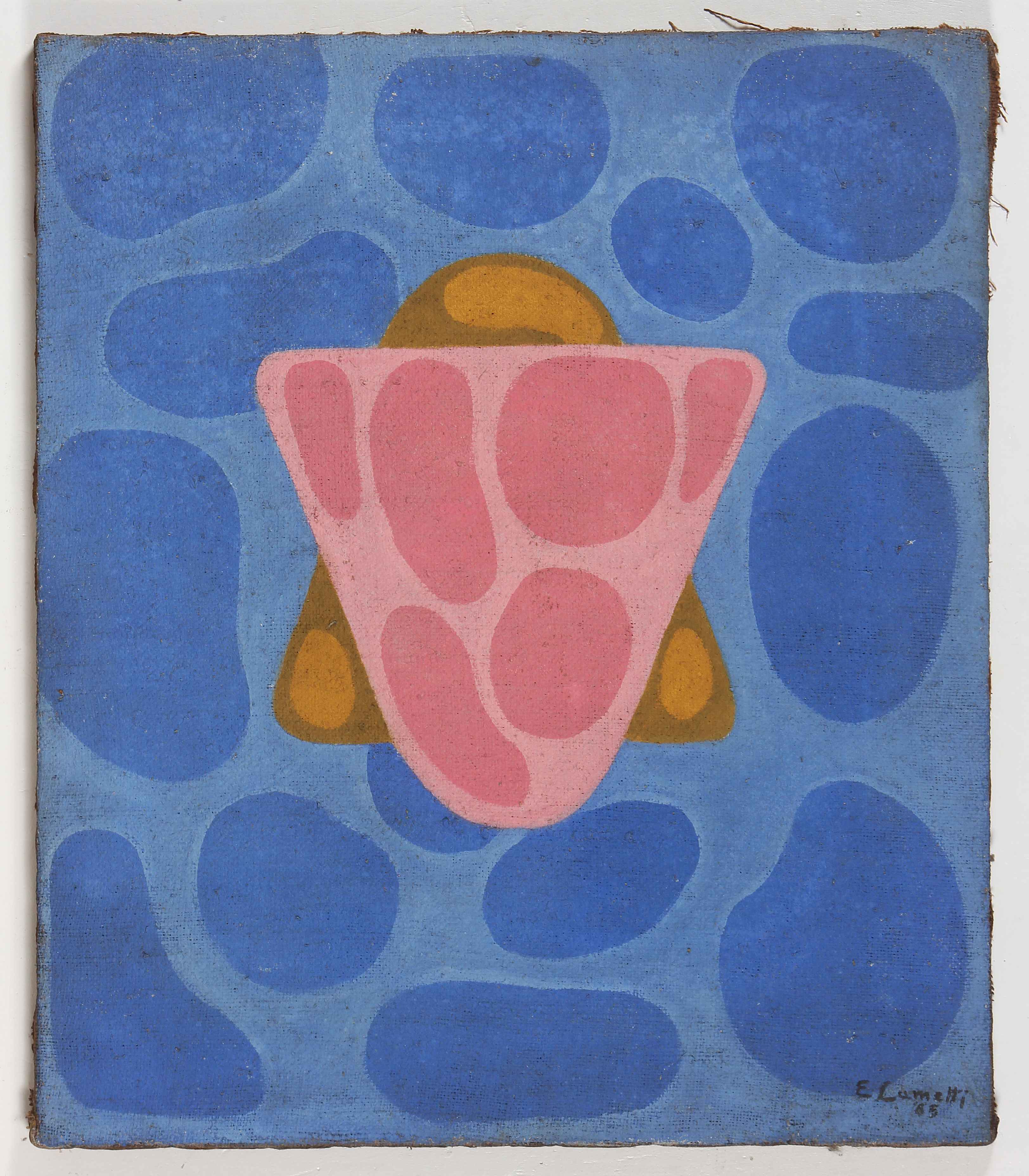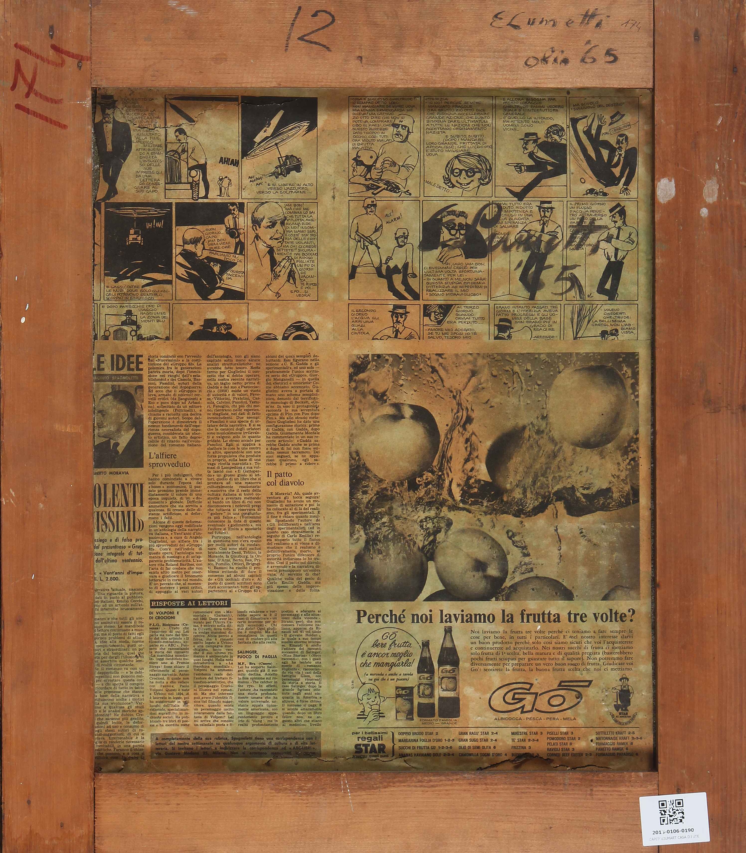 LUMETTI ( XX SEC.) Senza titolo. 1965. Olio su tela . Cm 60,00 x 70,00. Firma e anno in basso a destra e al retro. La tela presenta delle piccole mancanze di colore.