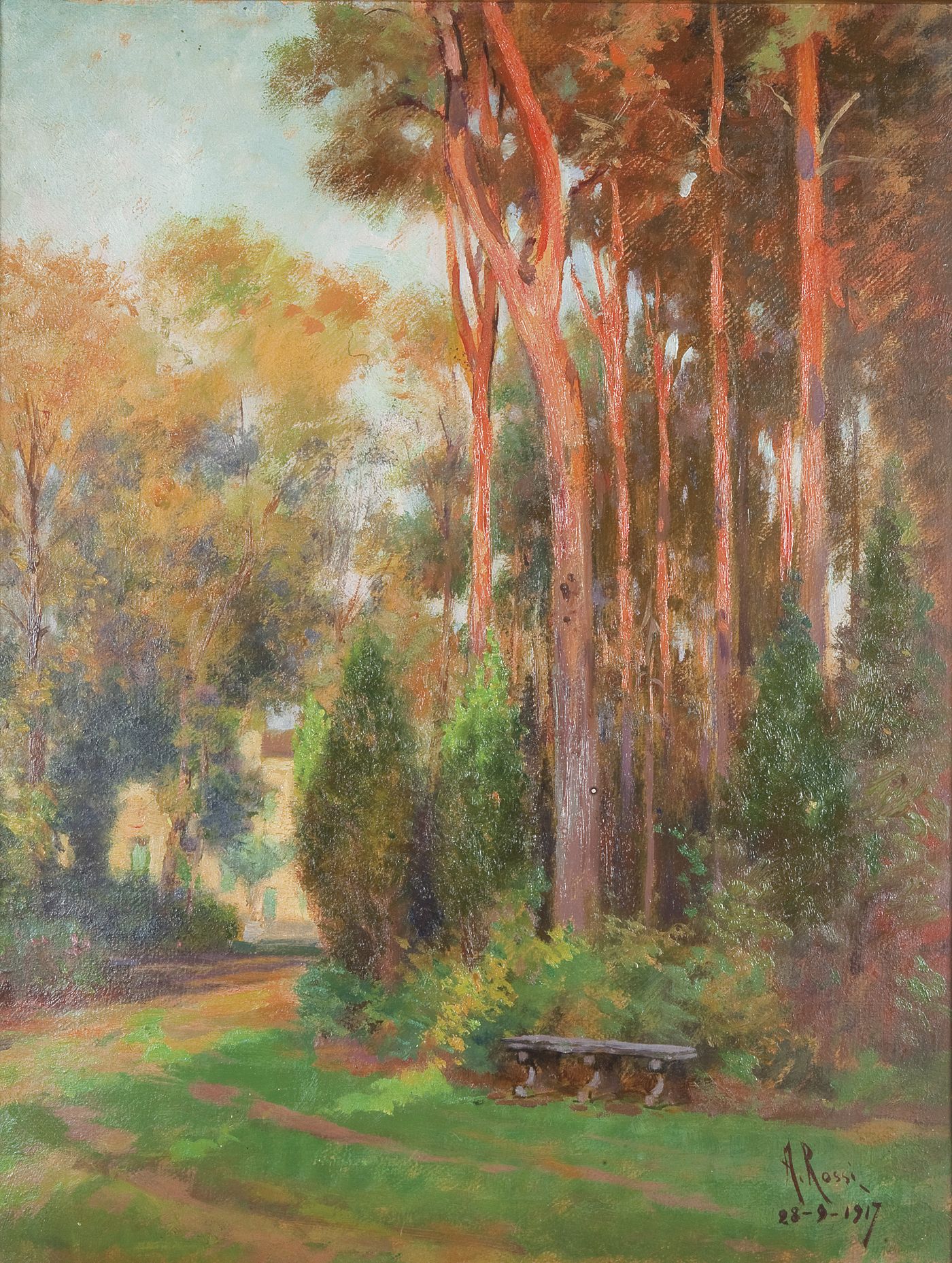 ROSSI ALBERTO (Torino 1858 – 1936) – "Paesaggio" 28/9/1917, 46,5x35,5 olio su cartone. Opera firmata e datata in basso a destra