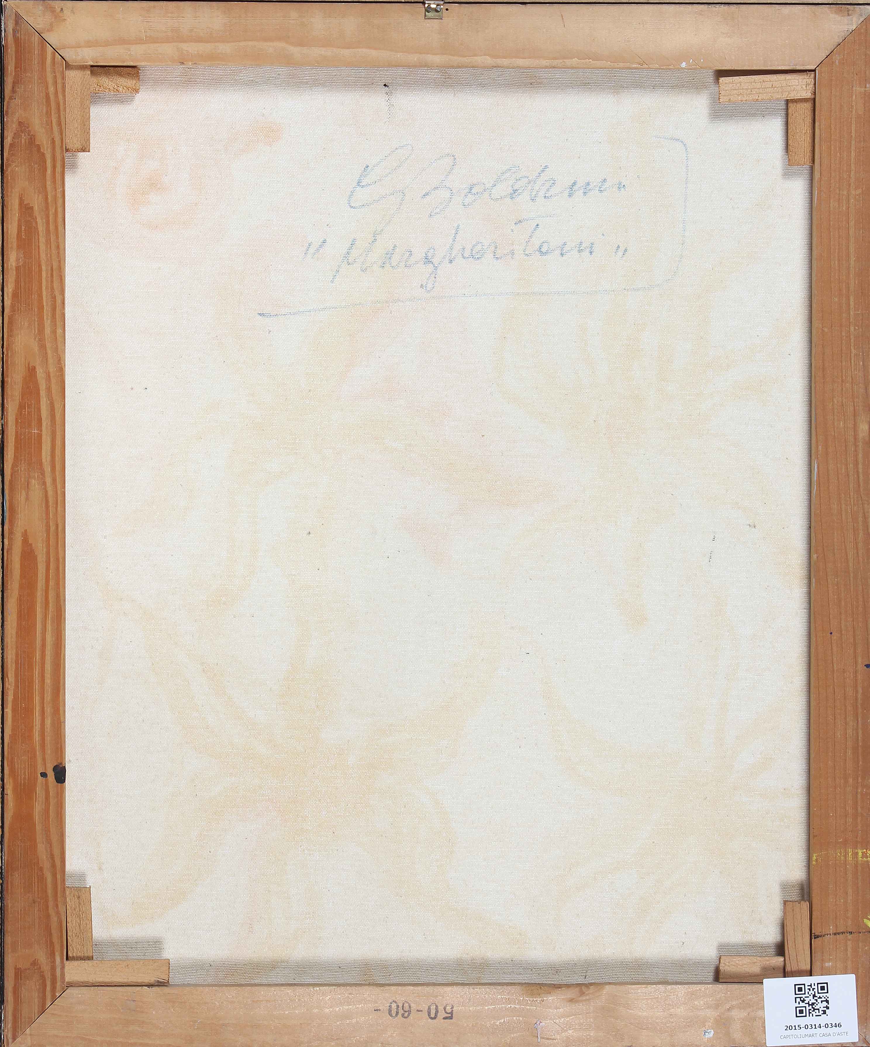 BOLDRINI GUSTAVO (1927 - 1987) Margheritani. Acrilico e olio su tela. Cm 50,00 x 60,00. Firma in basso al centro. Al retro titolo e anno. La tela presenta delle piccole mancanze di colore. Cornice presente