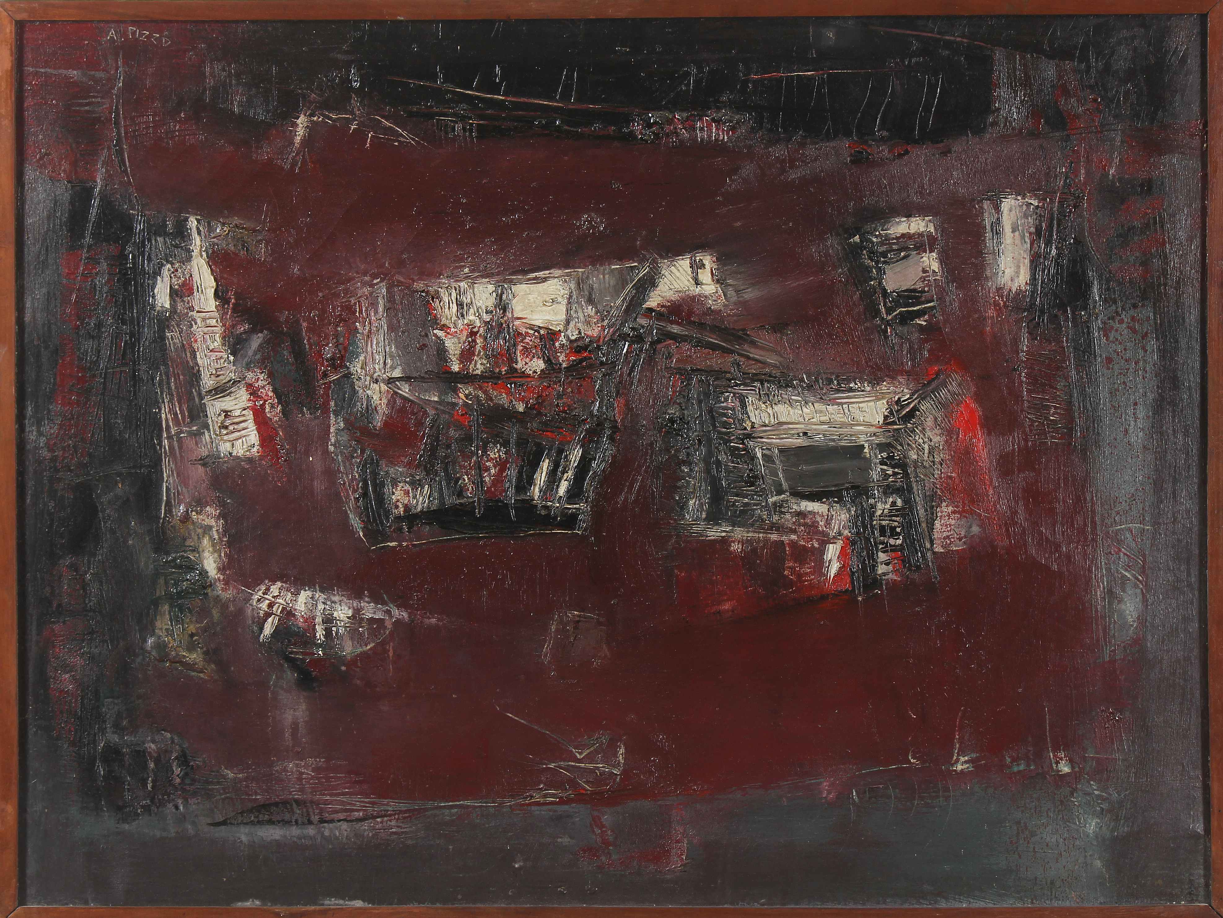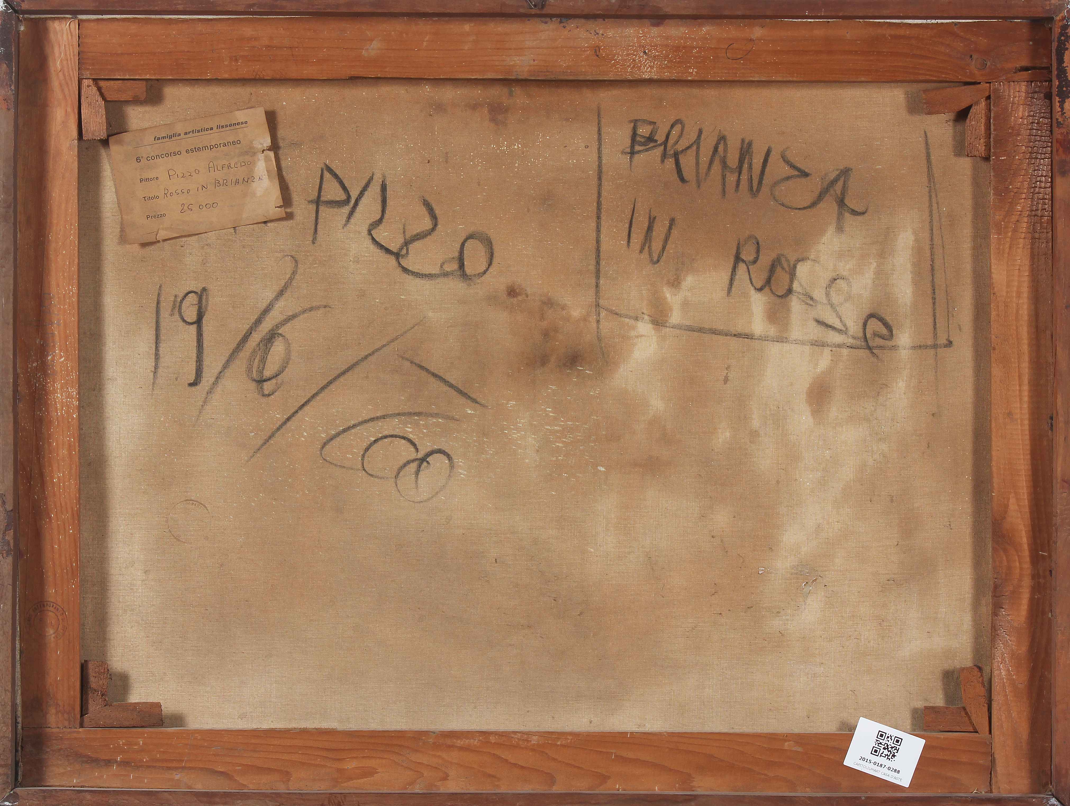 PIZZO GRECO ALFREDO (n. 1942) Brianza in rosso. Olio su tela . Cm 80,00 x 59,00. Firma in alto a sinistra. Al retro titolo, firma e data. Cornice presente