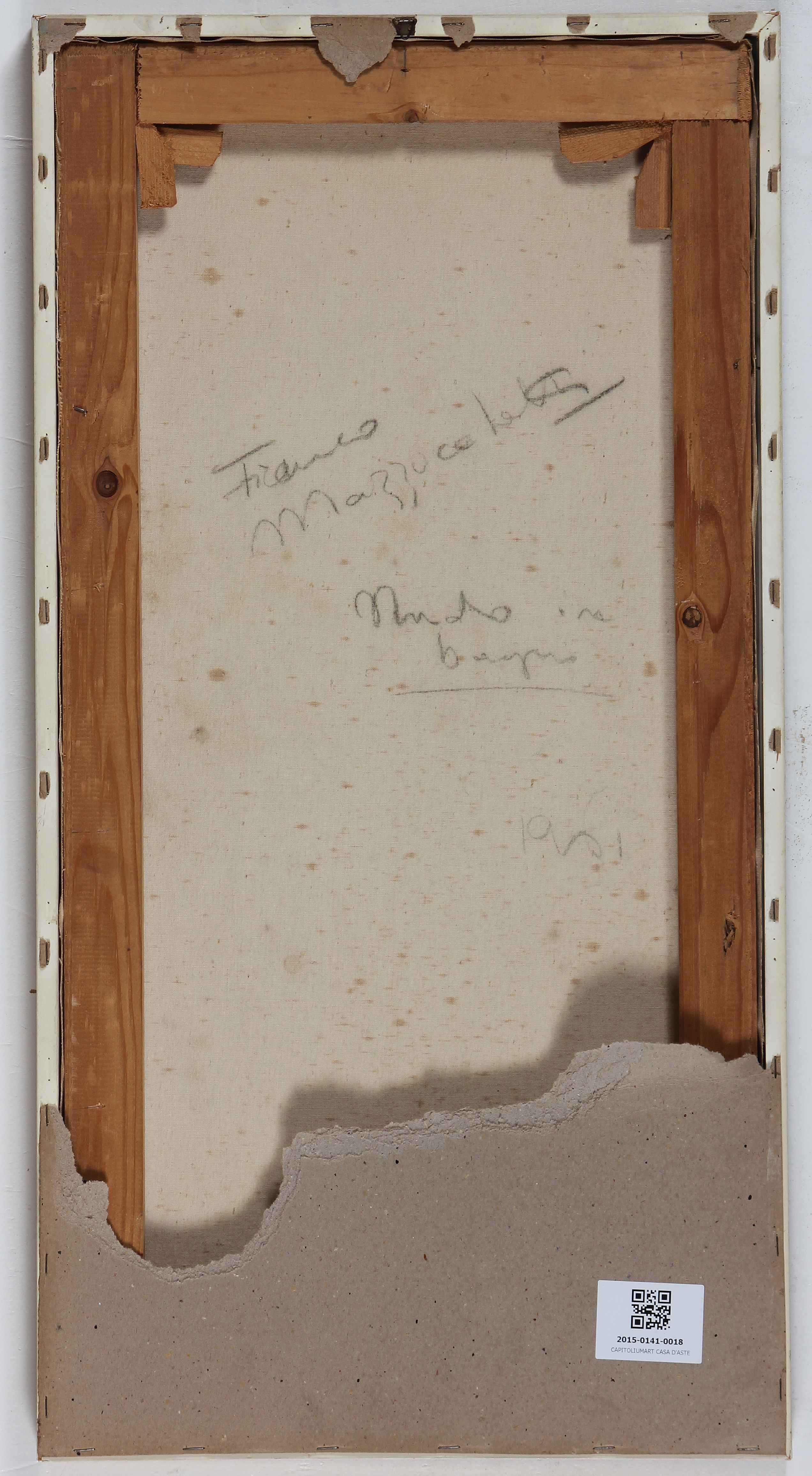 MAZZUCCHETTI FRANCO (1935 - 1996) Nudo in bagno. Olio su tela . Cm 35,00 x 70,00. Firma in alto a sinistra. Al retro firma e titolo. Cornice presente